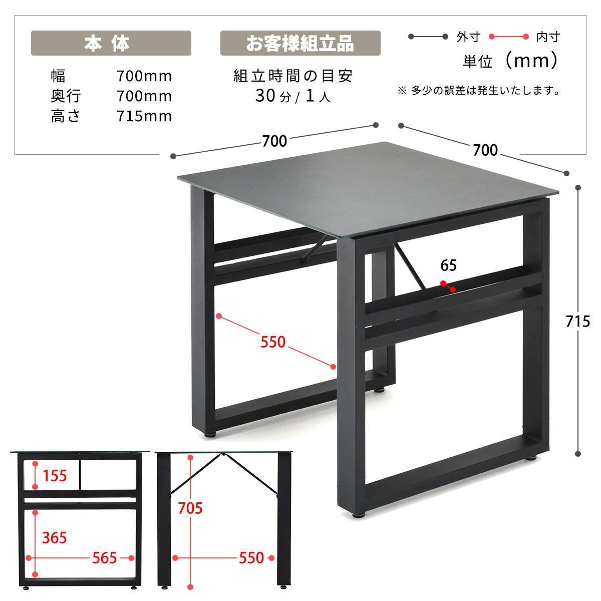 ・テーブル:強化ガラス、スチールパイプ