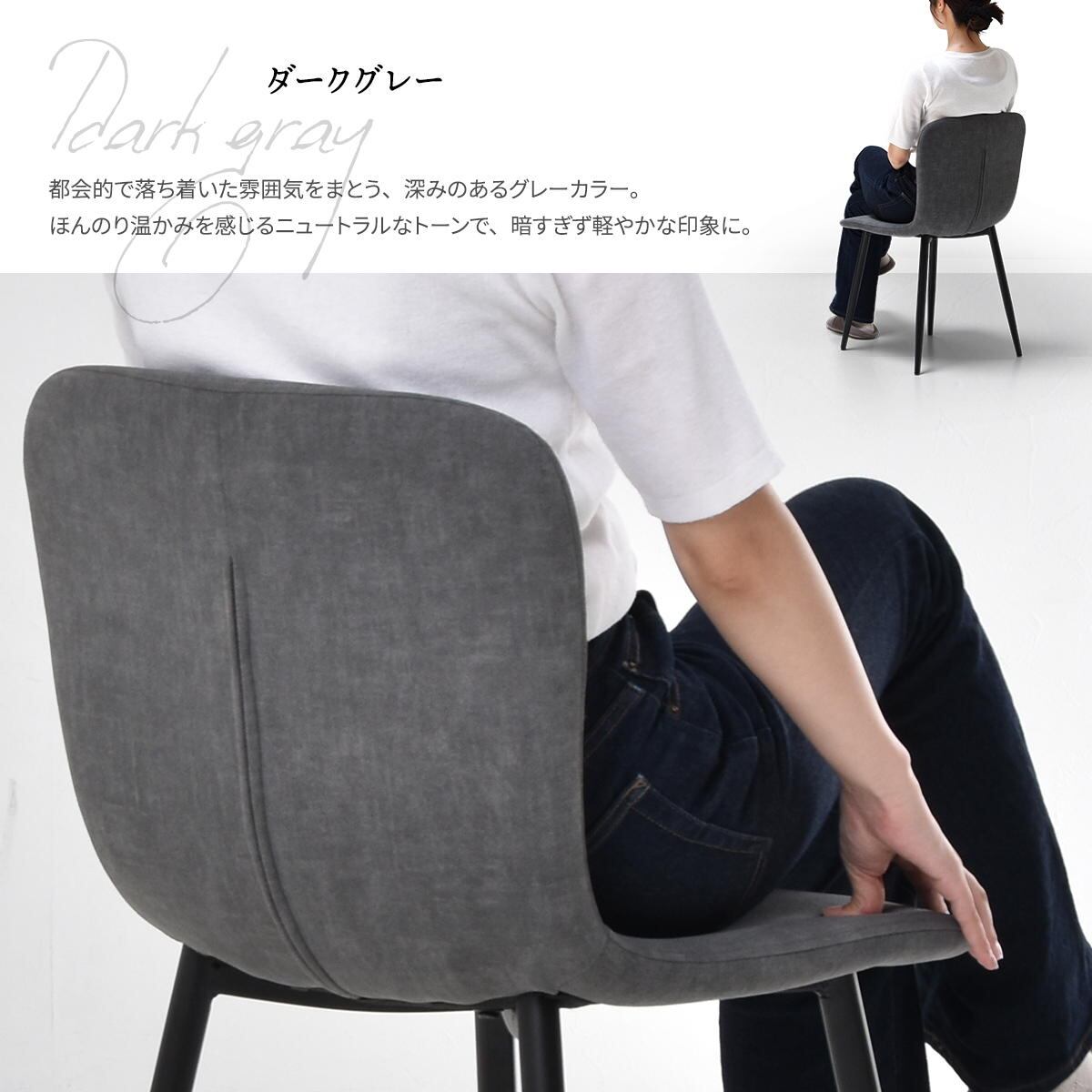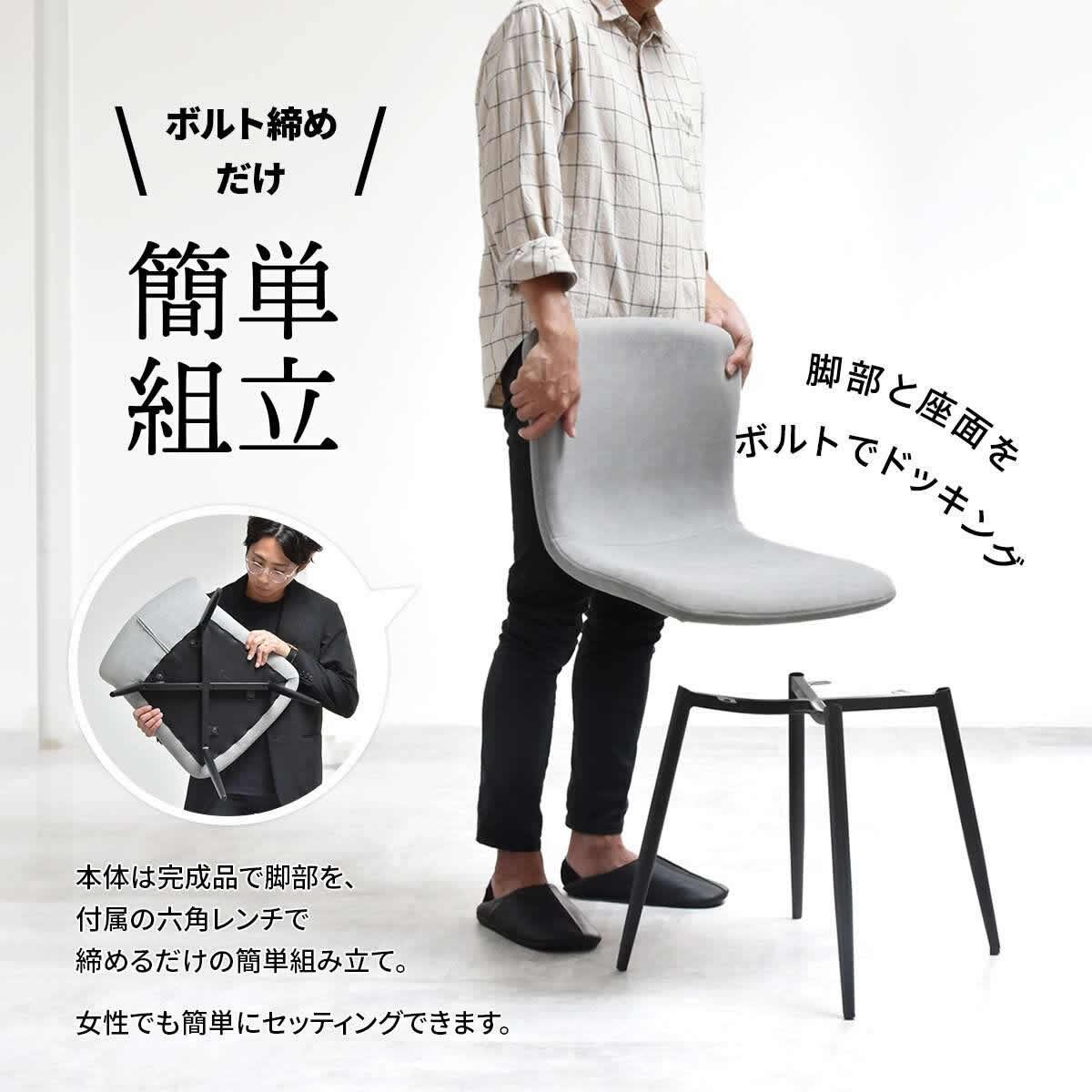 チェアは肘置きが無い為、ダイニングテーブルの下にすっきりと収まる洗練されたデザインのピーチスキン生地のダイニングチェアです。