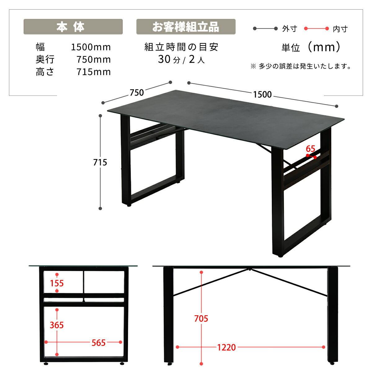 ・テーブル:幅150cm、奥行75cm、高さ71.5cm