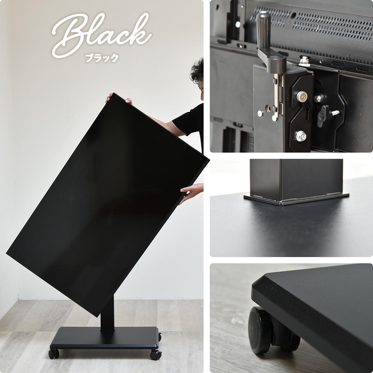テレビスタンド 63.5cm幅 ブラック ホワイト 90度回転式 高さ調整可能 デジタルサイネージ 縦置き 横置き 縦型ディスプレイ対応 縦型モニター対応 左右スイング キャスター付き おすすめ おしゃれ モダン スタイリッシュ スリム コンパクト 省スペース 65型テレビ対応 キャスター付きTVスタンド 縦型TVスタンド TVスタンド