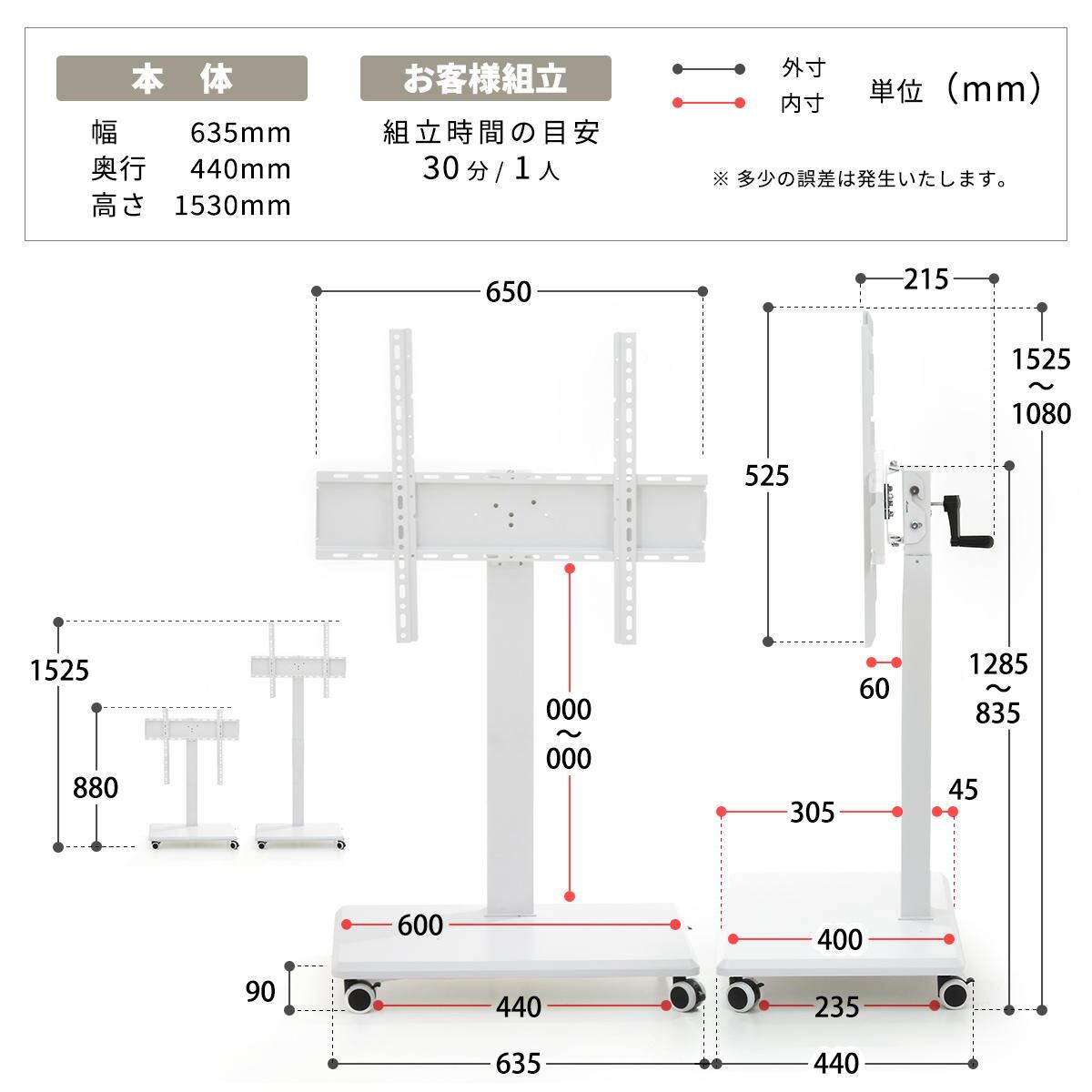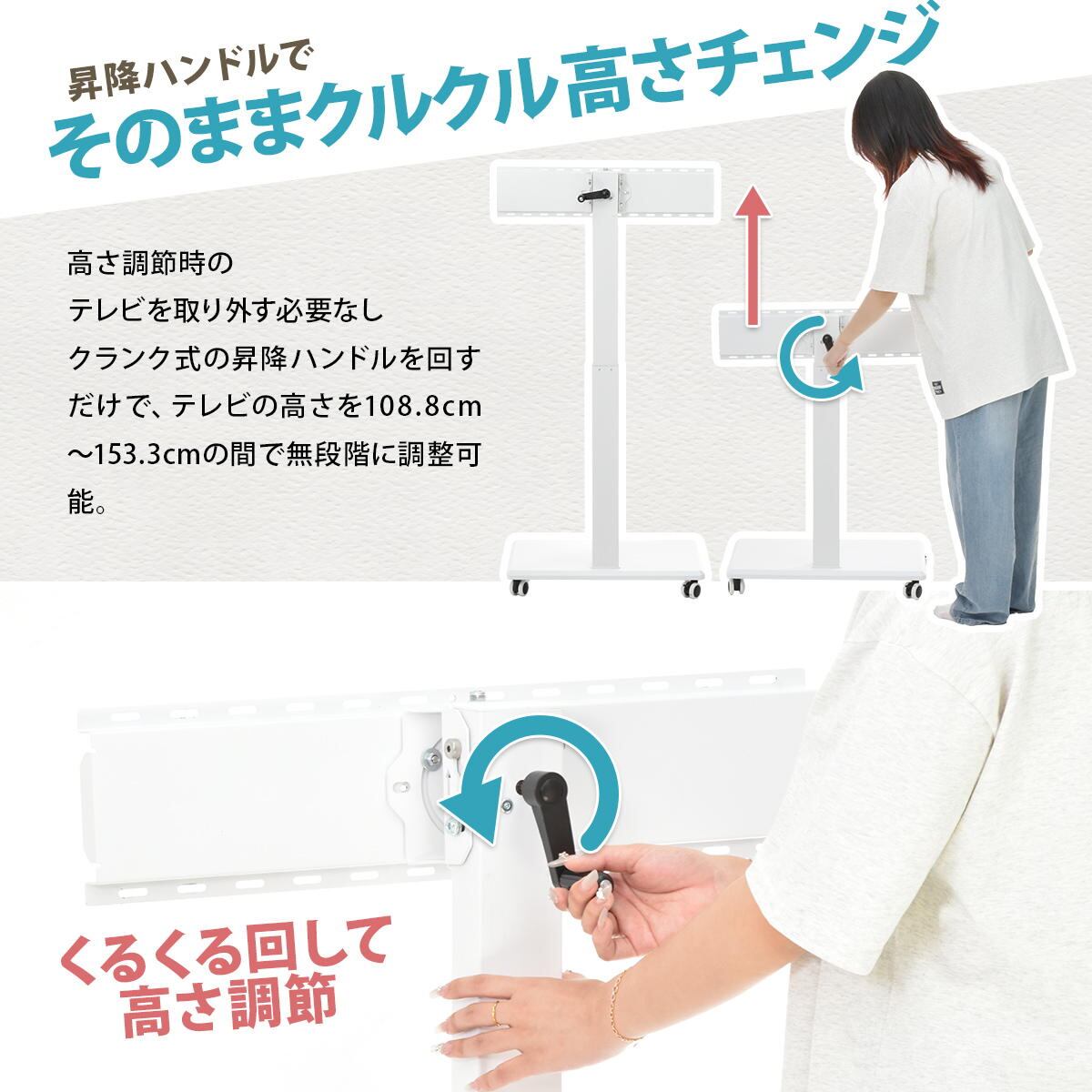 テレビを取り外すことなく昇降ハンドルを回すだけで簡単に高さ調整が可能です。