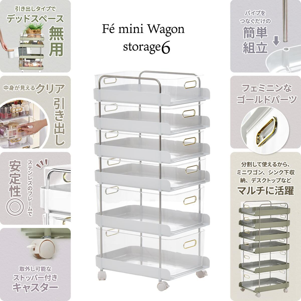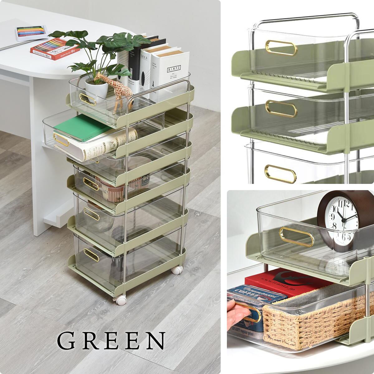 キャスターを外して分けて使用することも可能で、高さの無い場所での収納やシンク下、デスク上収納としての使用もおすすめです。