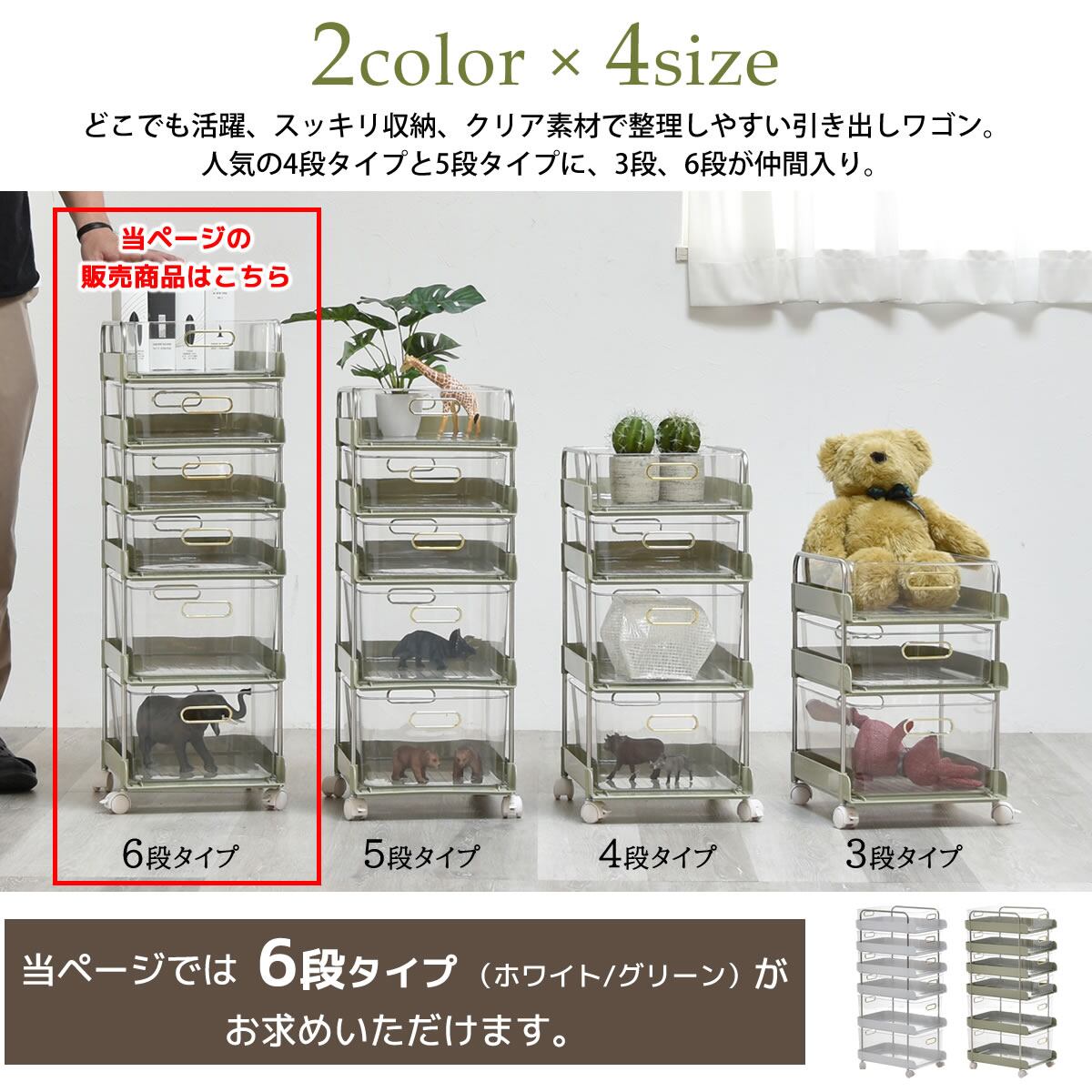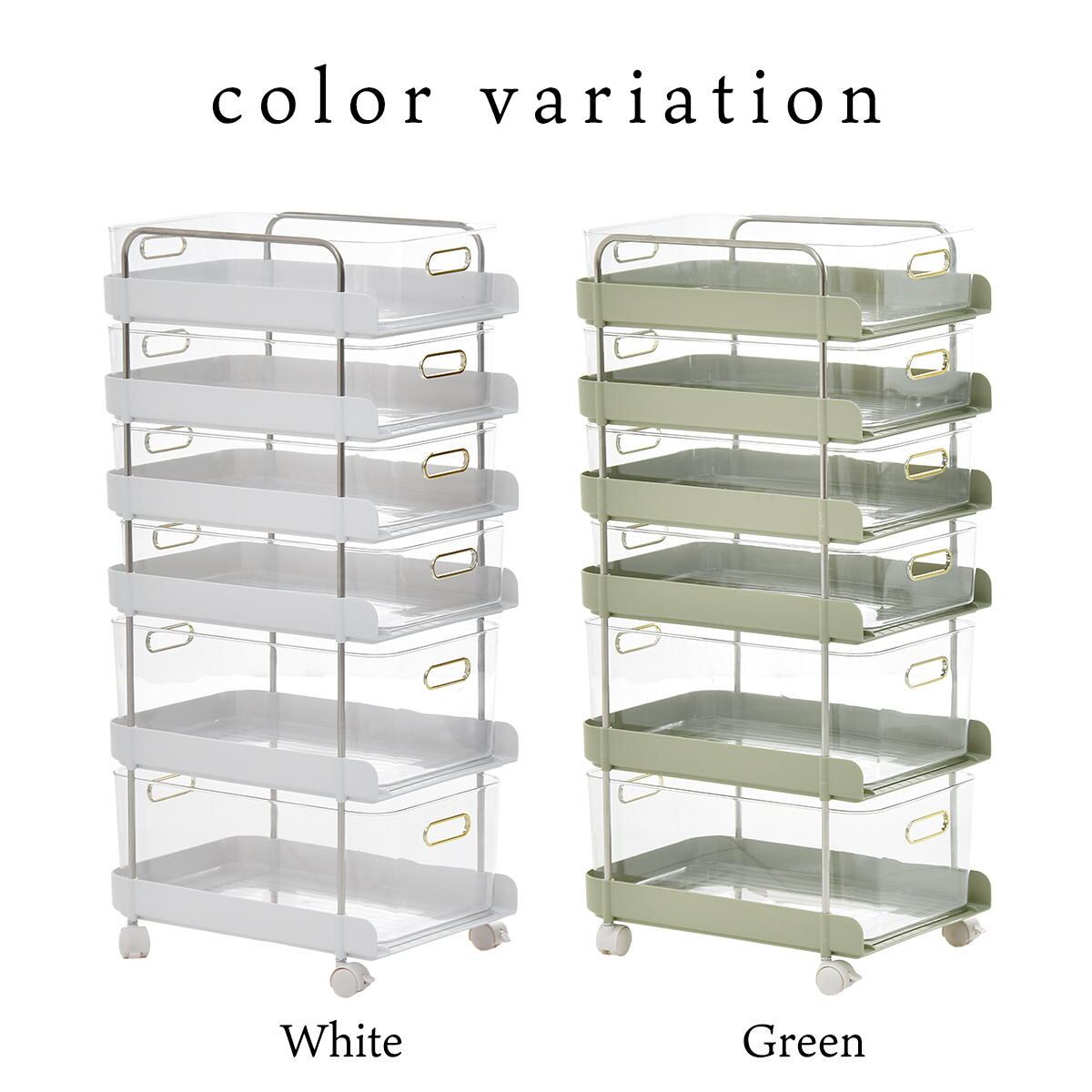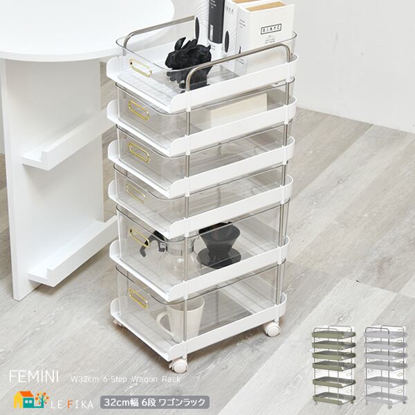 キャスター付き6段ワゴン 32cm幅 グリーン ホワイト 緑 白 6段ワゴン 6段ラック 6段収納ラック 6段収納ワゴン デスクワゴン サイドワゴン キッチンワゴン サニタリーワゴン 雑貨収納 日用品収納 コスメ収納 クリアボックス ワゴンラック キャスター付きラック おすすめ おしゃれ 北欧 モダン スタイリッシュ キャスター取外し可能 収納 デスクサイド ベッドサイド ソファサイド