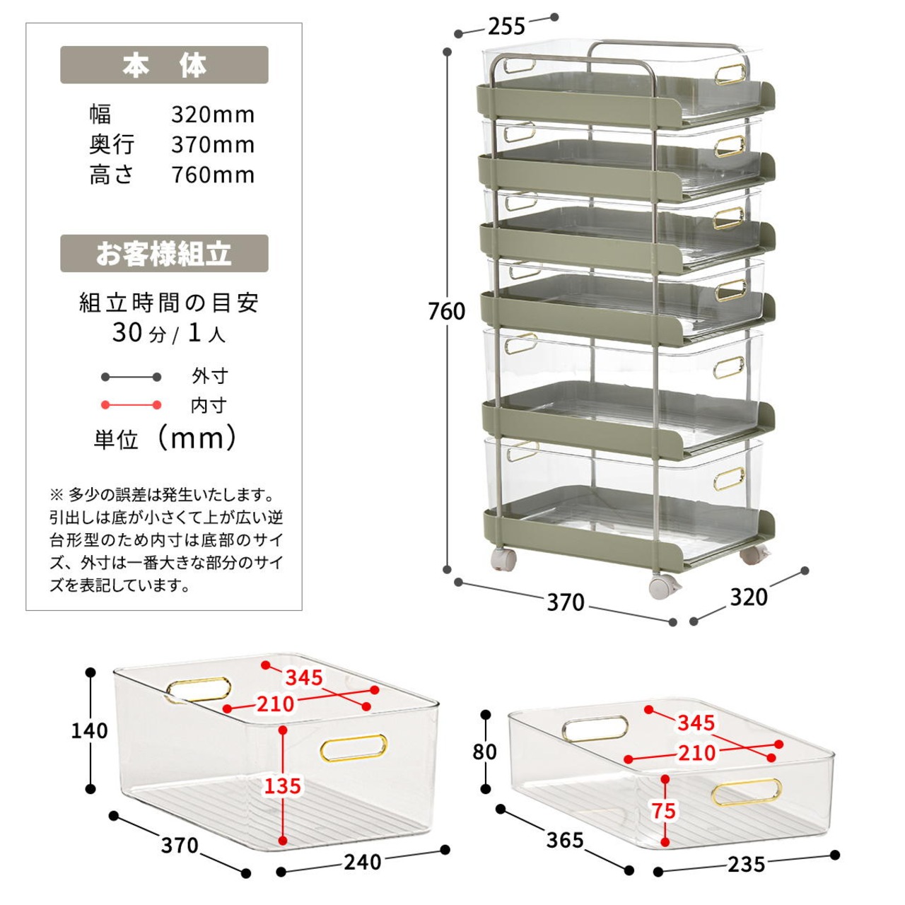 ■商品内容:キャスター付き6段ワゴン×1台