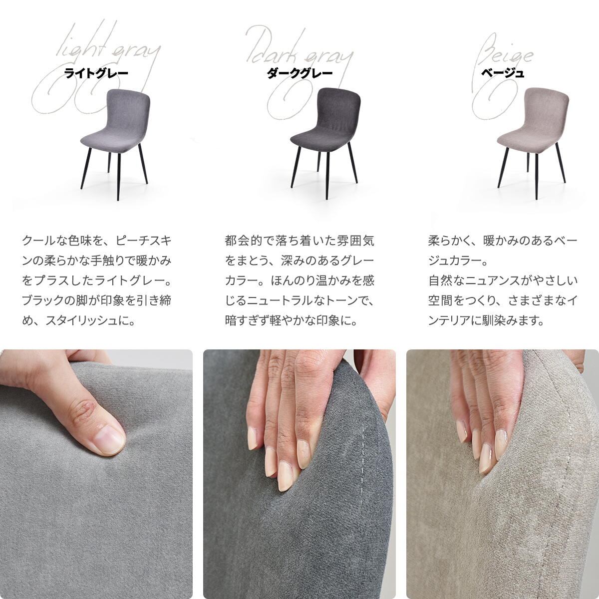 チェアは表面生地は肌触りのよいピーチスキン生地を使い、柔らかみのあるデザインに仕上がっているダイニングチェアです。