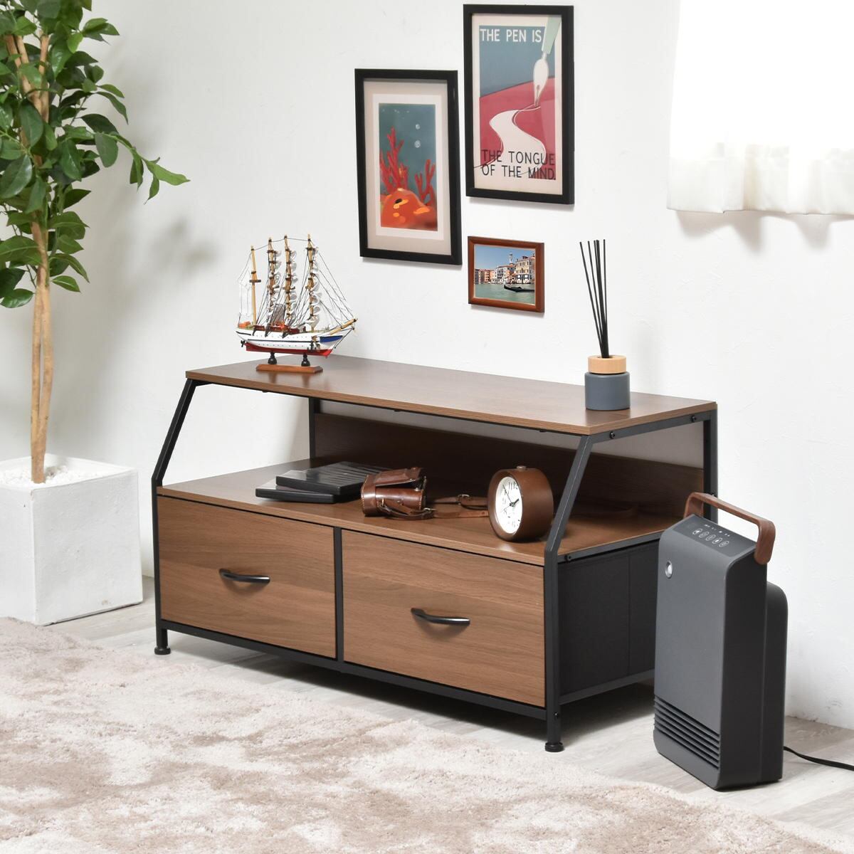■商品内容:収納棚付き収納チェスト(引き出し2杯、ロータイプ)×1台