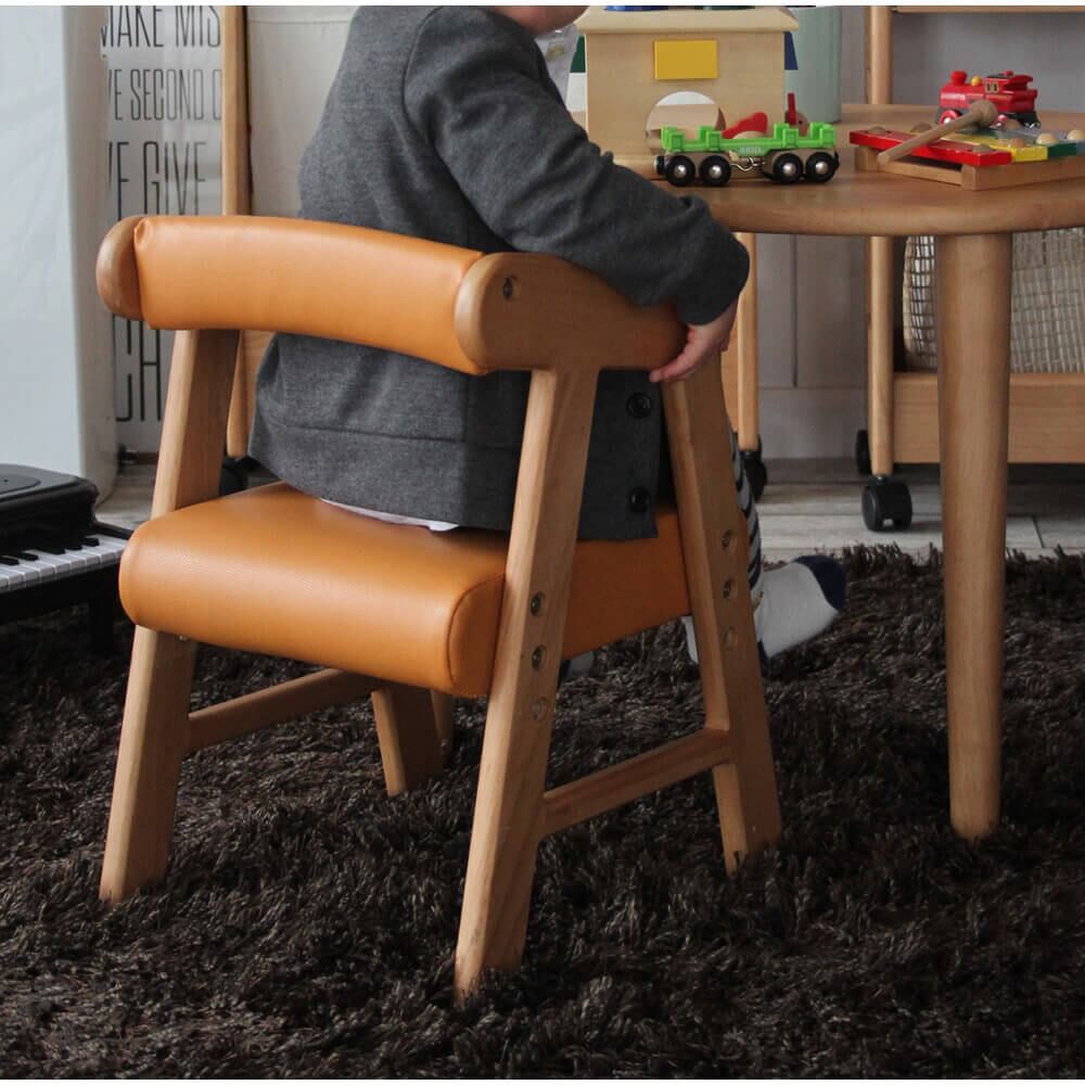 キッズ アームチェア キッズチェア 子供用椅子 高さ調整可能 背もたれ付き 肘置き付き チェア 椅子 キッズチェアー 子供用チェアー PVC 合皮チェア 合成皮革 おすすめ おしゃれ 北欧 キャメル お子様椅子 お子様チェア