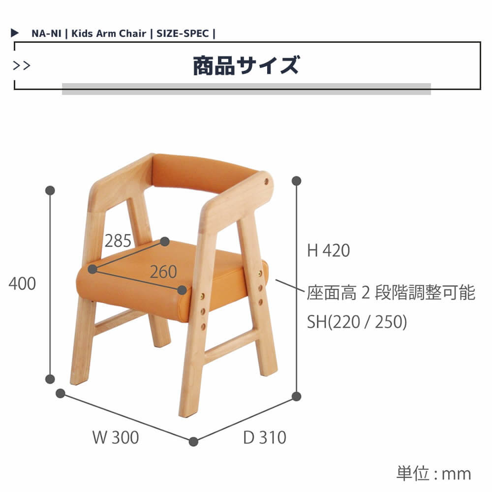 キッズ アームチェア 子供用チェア キャメル 合皮チェア おすすめ おしゃれ 北欧 子供用チェアー お子様用椅子 幅30cm 奥行31cm 高さ42cm 座面高25cm 合成皮革 座面高さ調整可能 椅子 キッズ家具 子供用家具 インテリア アームチェアー 肘置き付き椅子 送料無料