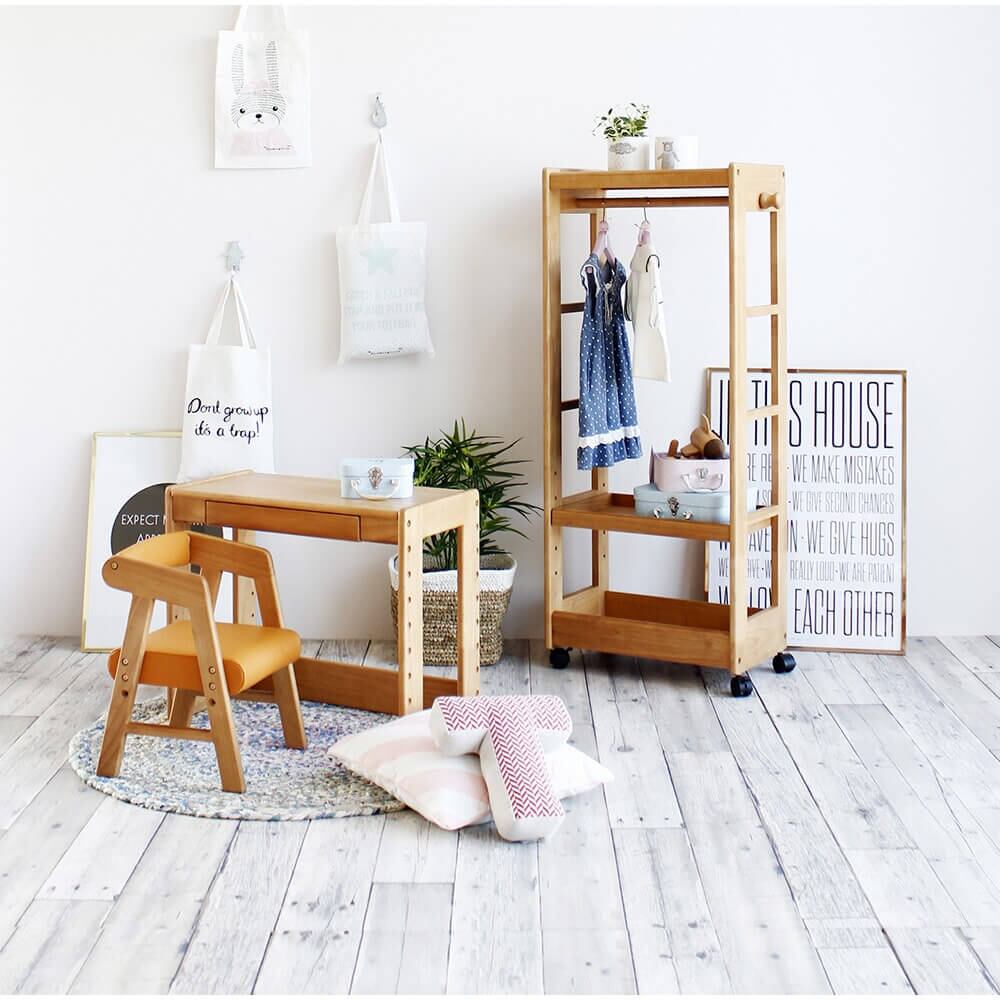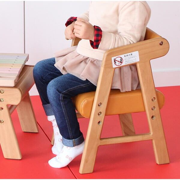 座面の高さを3cmピッチで2段階(座面高22cm、25cmの2段階)に調節できる、かわいいひじ付きキッズチェアです。