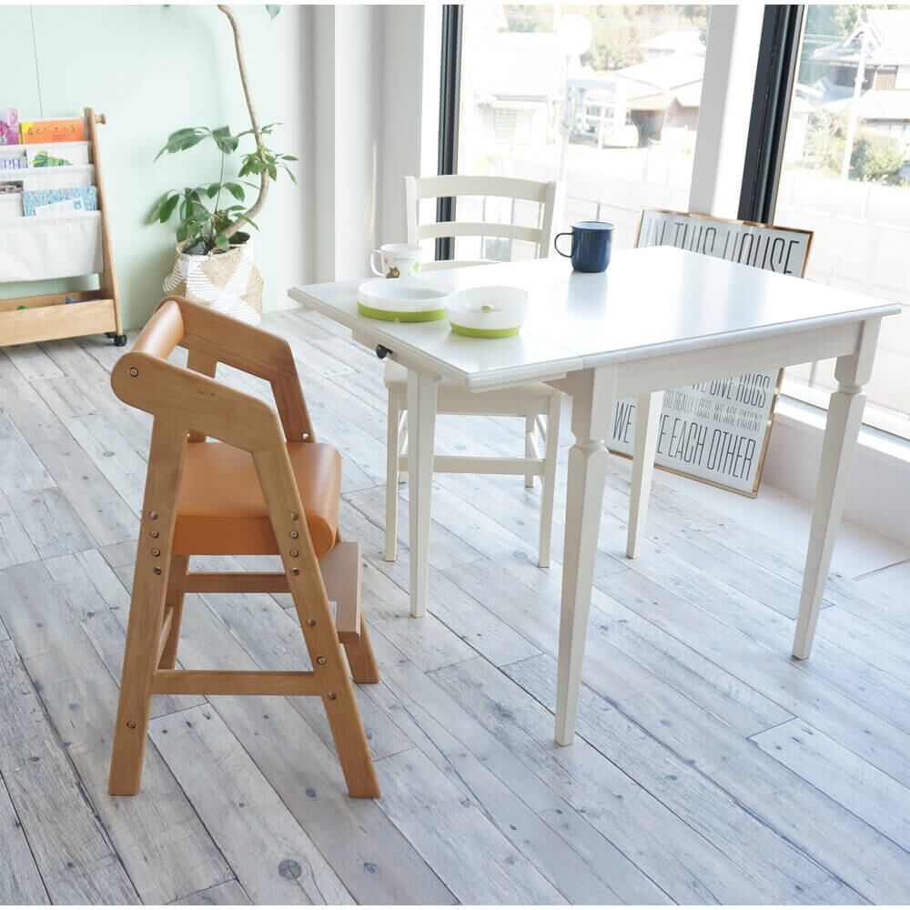 ダイニングで使用できるお子様の成長に合わせて3段階の座面高調整が可能な子供用のキッズハイチェアです。