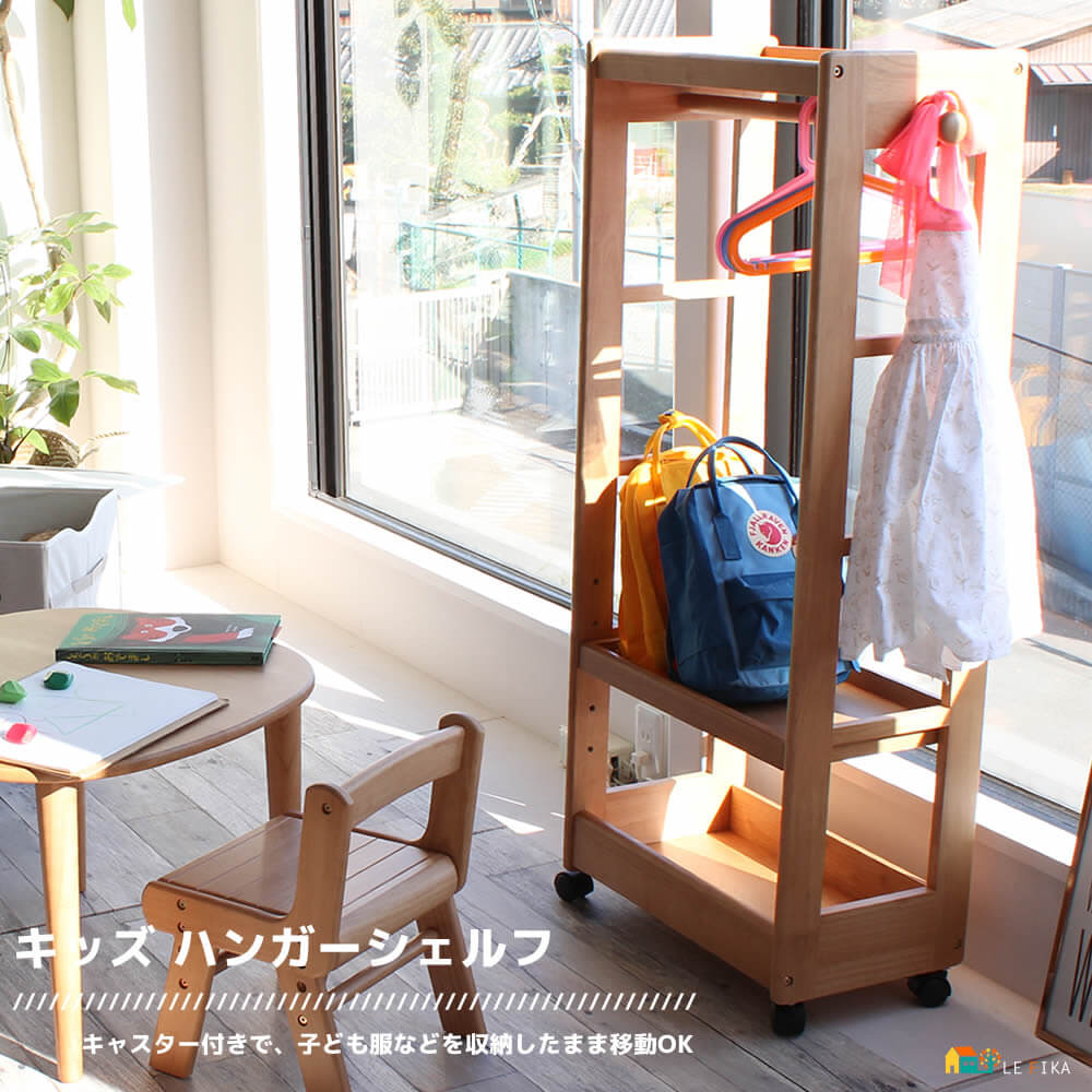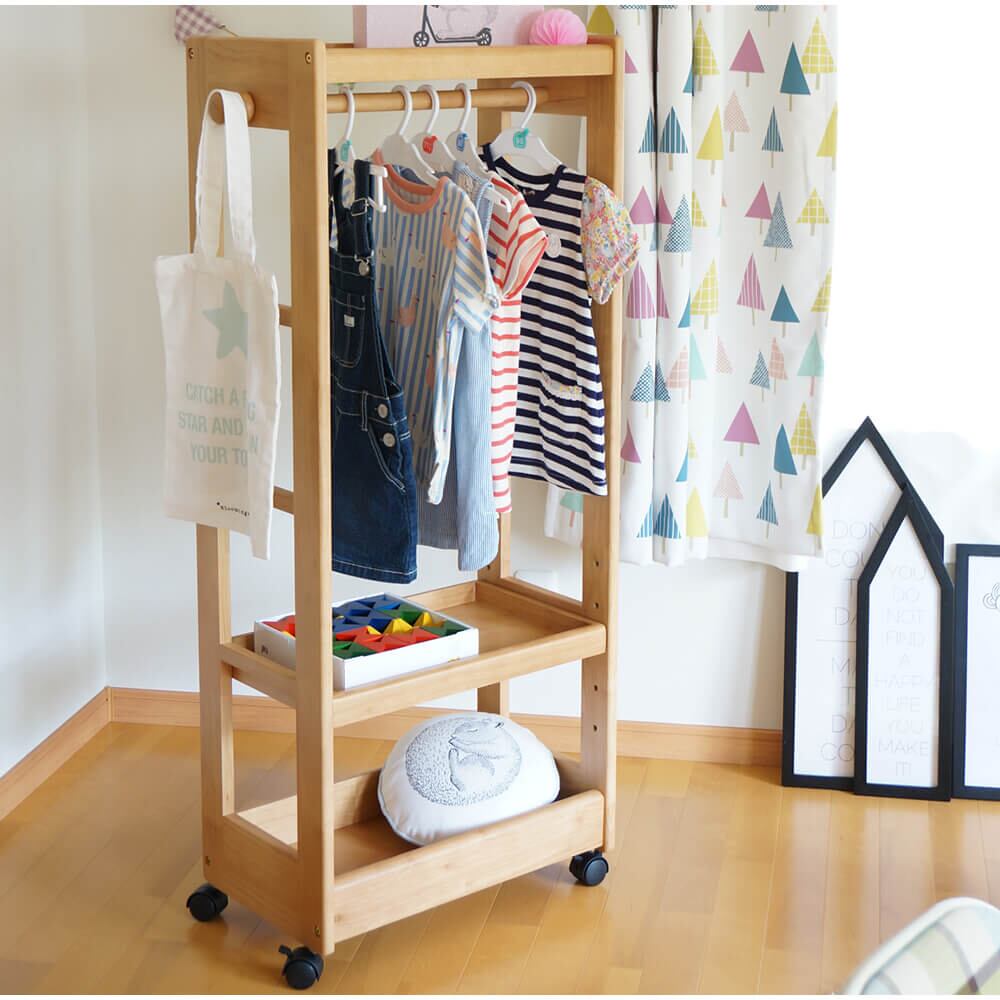 キッズハンガーシェルフ ハンガーラック キッズ収納ラック おすすめ おしゃれ 北欧 ナチュラル キャスター付き キャスター付きハンガーラック 木製ハンガーラック 子供用収納ラック キッズ収納 キッズ収納家具 キッズハンガー キャスター付きラック 衣類ラック おもちゃ収納 キッズシェルフ キッズラック