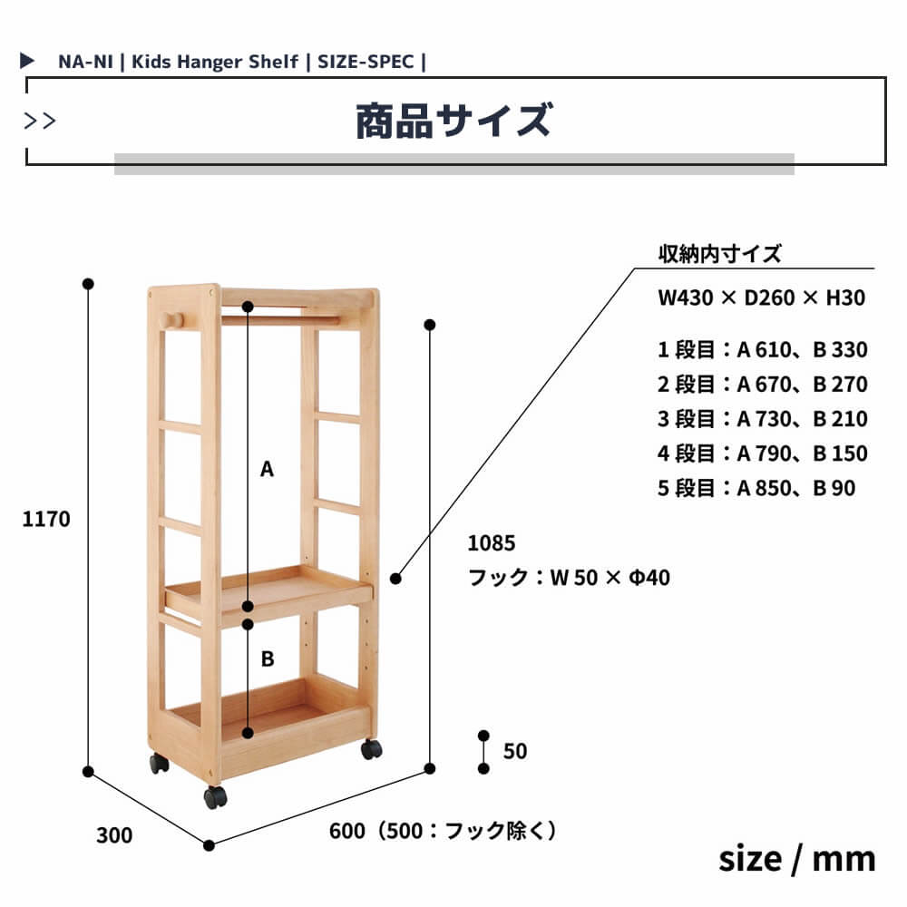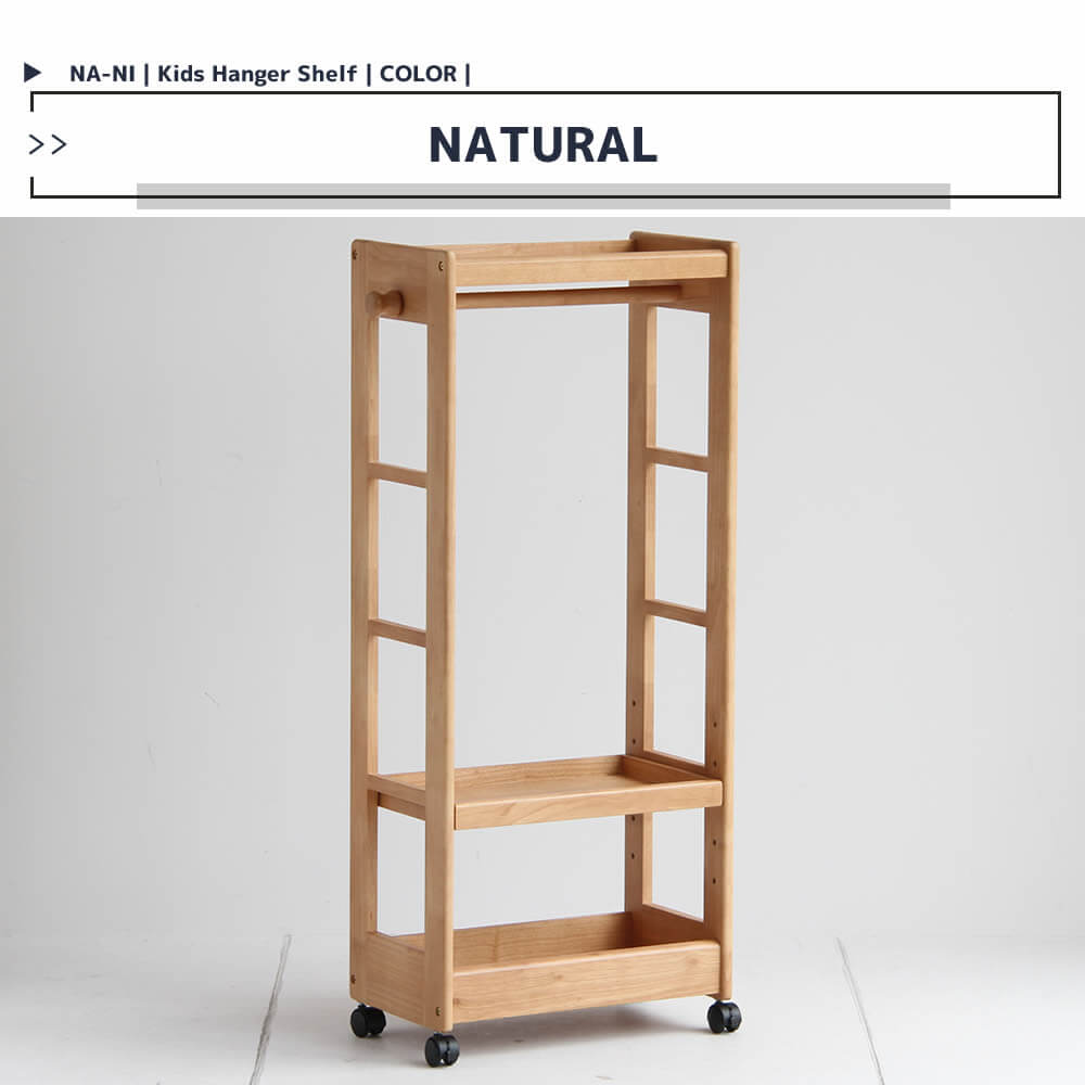 キッズ ハンガーシェルフ ナチュラル キャスター付き ハンガーラック 収納ラック 子供用ラック 衣類収納 おすすめ おしゃれ 北欧 木製ラック 全幅60cm 奥行30cm 高さ117cm お子様用 キッズ収納 洋服ラック 子供用家具 インテリア 衣類ラック キッズハンガーラック 送料無料