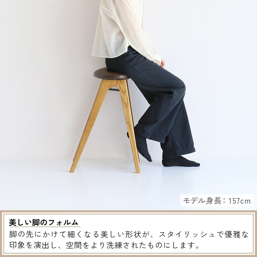 脚の先にかけて細くなる美しい形状の脚部は、スタイリッシュで優雅な印象を演出してくれます。