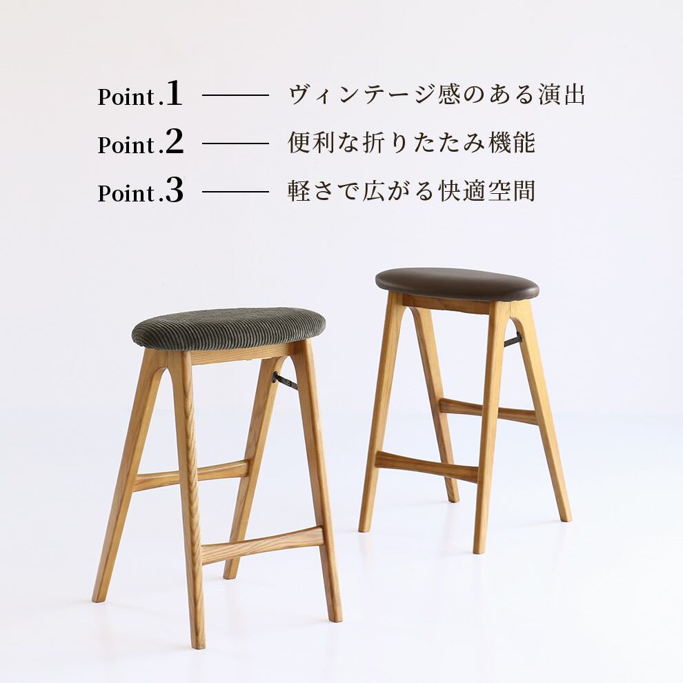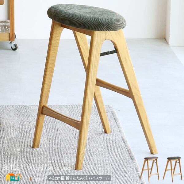 折りたたみ式スツール 1脚 単品 42cm幅 ブラウン カーキ 折りたたみスツール 折り畳み椅子 背もたれ無し 肘置き無し 肘掛け無し アームレスチェア 椅子 サブチェア ハイスツール カウンタースツール ダイニングスツール 折り畳み式ハイスツール 合成皮革 合皮スツール コーデュロイ コーデュロイスツール おすすめ おしゃれ 北欧 モダン スタイリッシュ 天然木使用 カウンタースツール