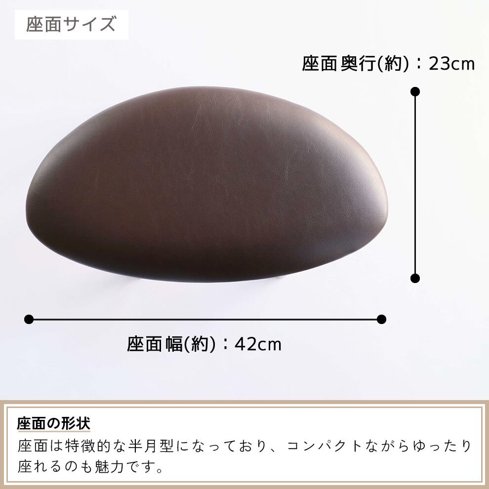 座面は特徴的な半月型のデザインで、コンパクトながらゆったりと座れるのも魅力です。