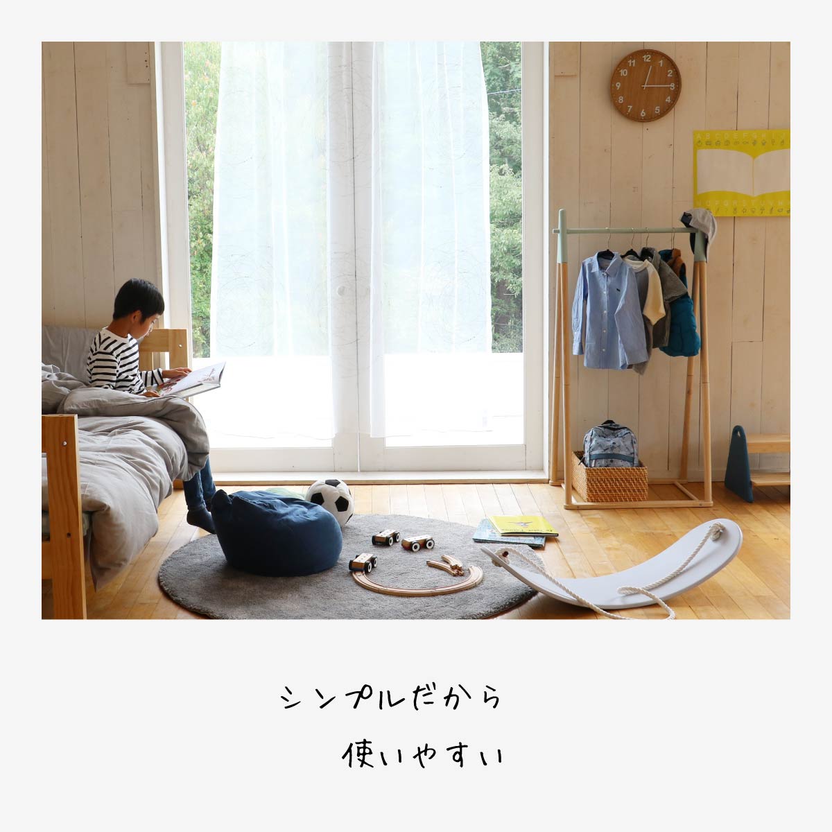 シンプルデザインで組立簡単な子供の衣類をかけておくのに便利なキッズハンガーラックです。