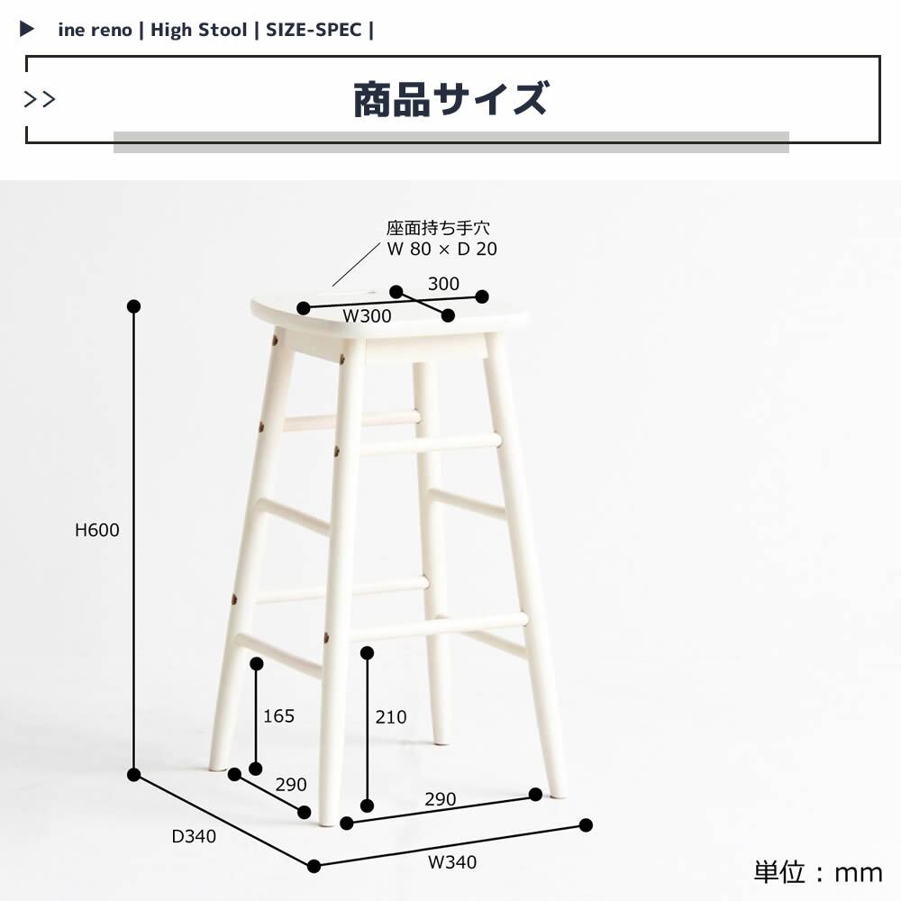持ち運びを考え、座面部分に取っ手を採用した高さ60cmのハイスツールです。