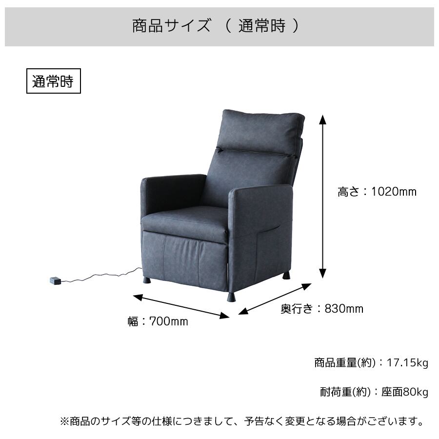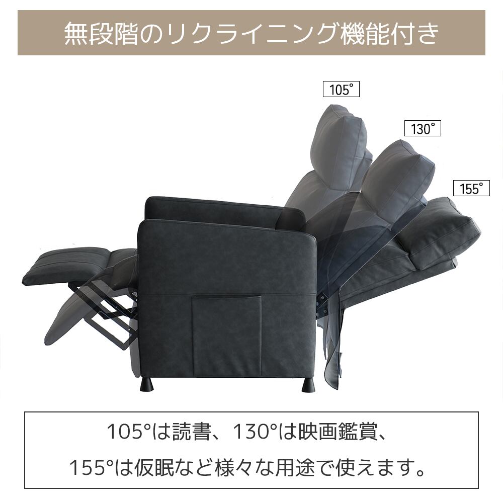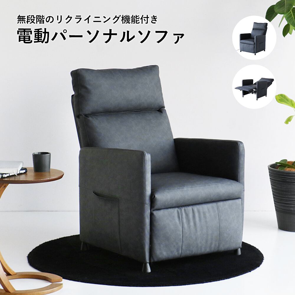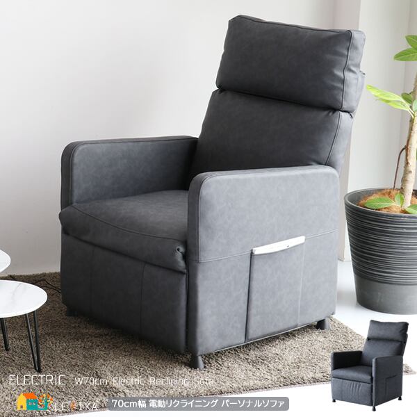 無段階のリクライニング機能付きの70cm幅電動リクライニングパーソナルソファです。