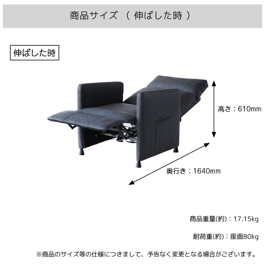 ・伸ばした時:幅70cm、奥行164cm、高さ61cm、座面高46cm