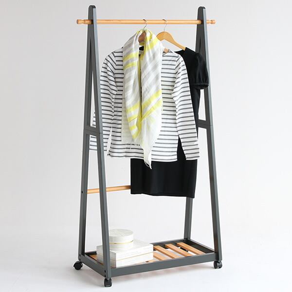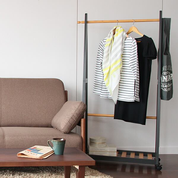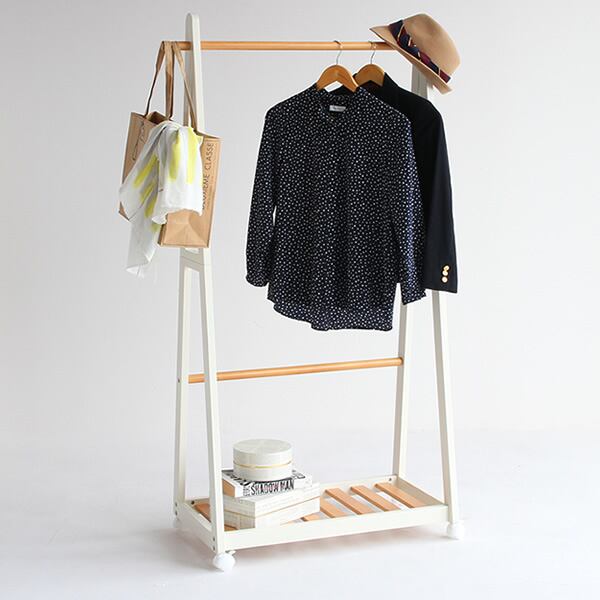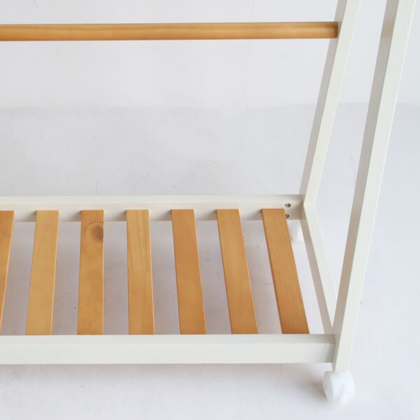 キャスター付きでお掃除の際にも移動が楽な、木の質感を活かしたツートン仕様のハンガーラックです。