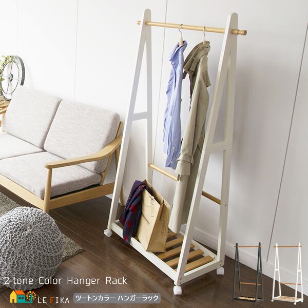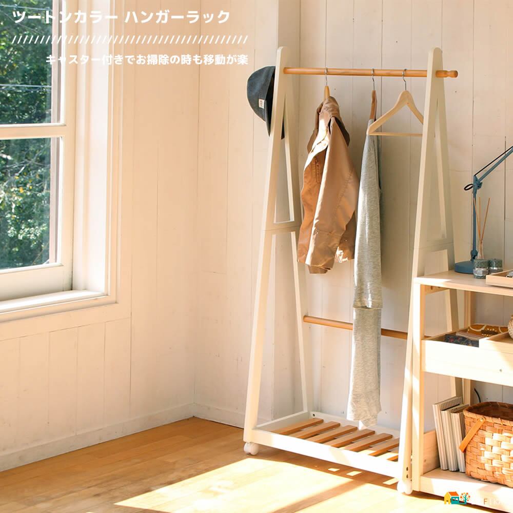 ツートンカラー ハンガーラック キャスター付きハンガーラック おすすめ おしゃれ 北欧 木製 天然木 木製ハンガーラック キャスター付き ツートンカラーハンガーラック 衣類収納ラック コートハンガー 棚板付きハンガーラック
