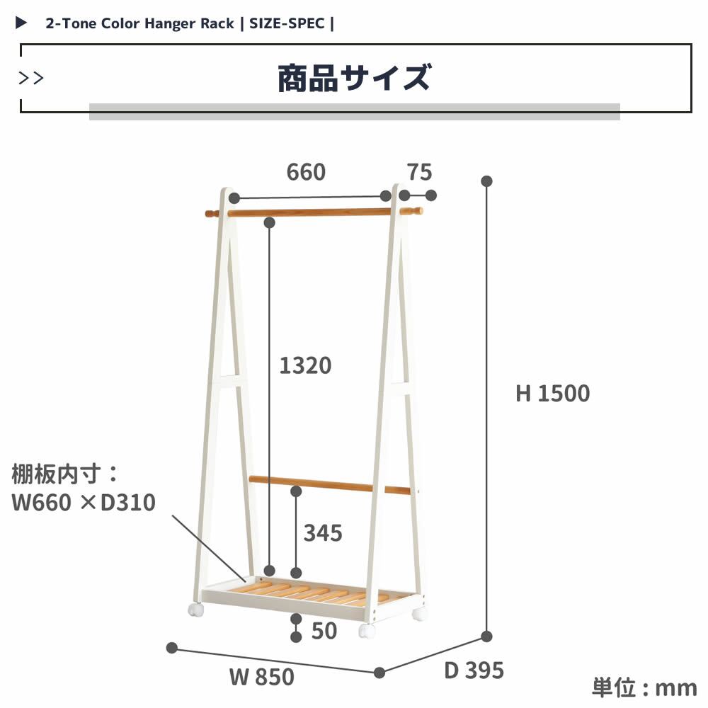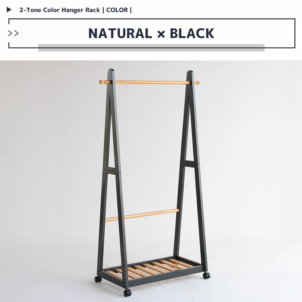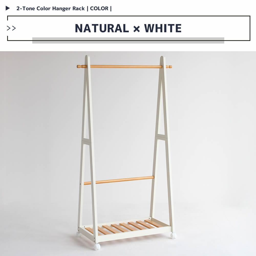 木製ハンガーラック ナチュラルブラック ナチュラルホワイト 白 黒 衣類ハンガー 洋服ハンガー 収納ラック 小物収納 ラック 幅85cm 奥行39.5cm 高さ150cm キャスター付きハンガーラック おすすめ おしゃれ 北欧 ツートンカラー 天然木 下棚付き 衣類収納ラック 送料無料