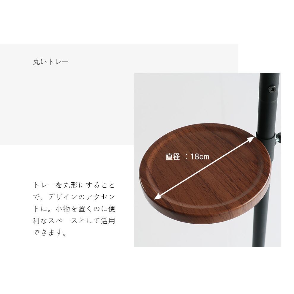 小物を置くのに便利なトレーは、丸形にすることでデザイン性を持たせました。