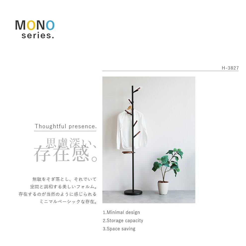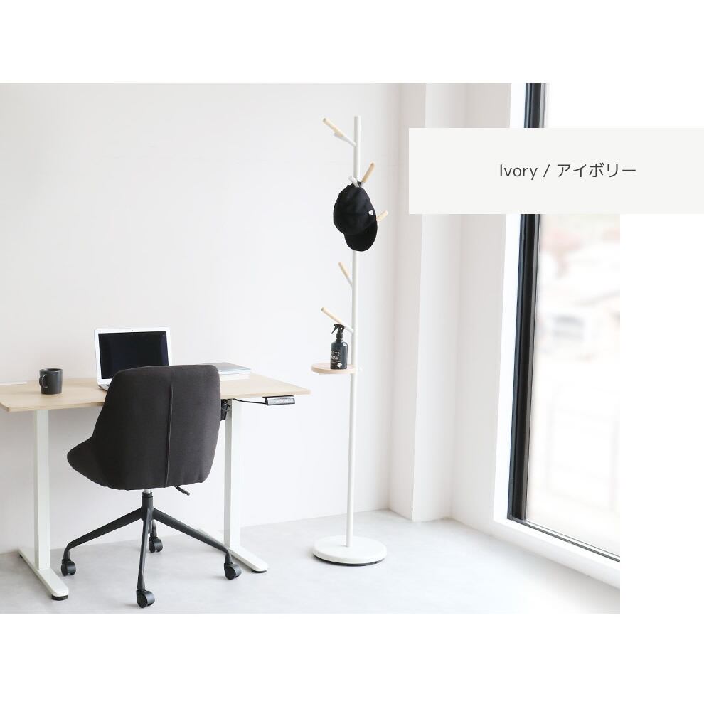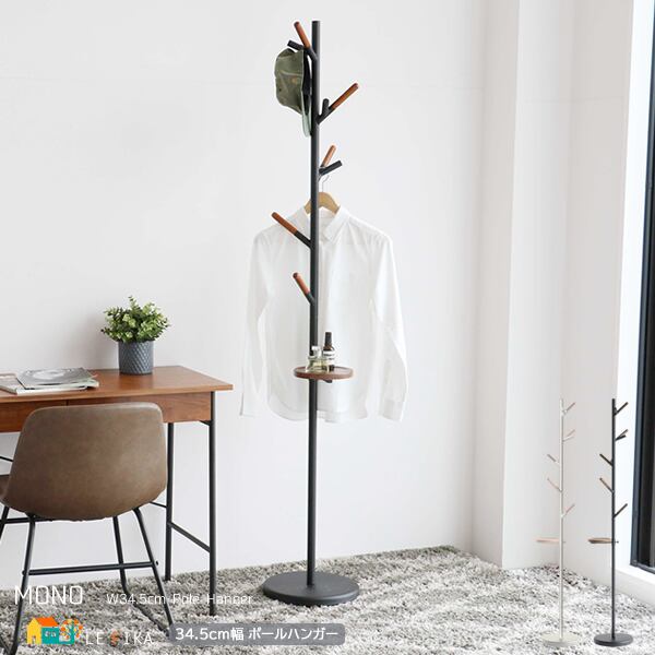 ポールハンガー 34.5cm幅 ブラック アイボリー ハンガーラック ポールハンガーラック 収納棚付き トレー付きハンガーラック 省スペース おすすめ おしゃれ 北欧 モダン スタイリッシュ 天然木使用 コンパクト スリム ワンルーム 一人暮らし 洋服ラック 帽子ラック 衣類ラック 洋服掛け リビング収納