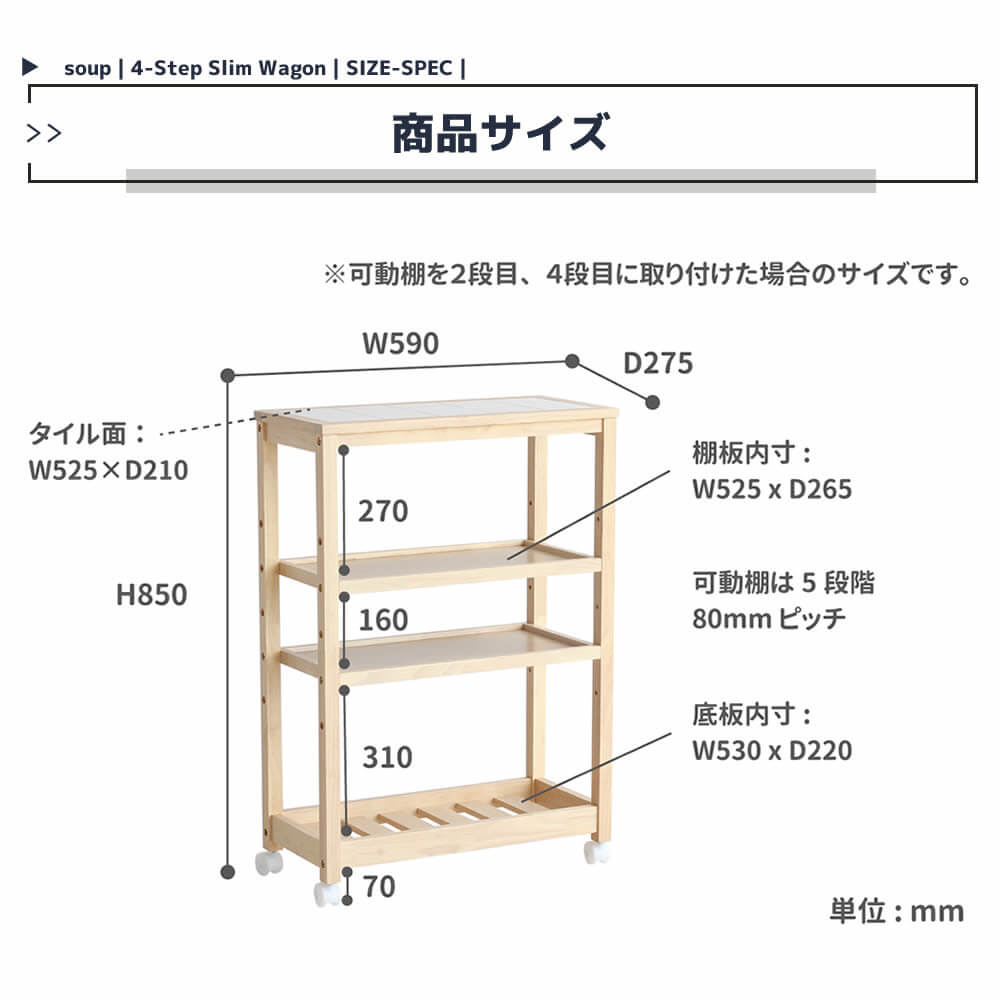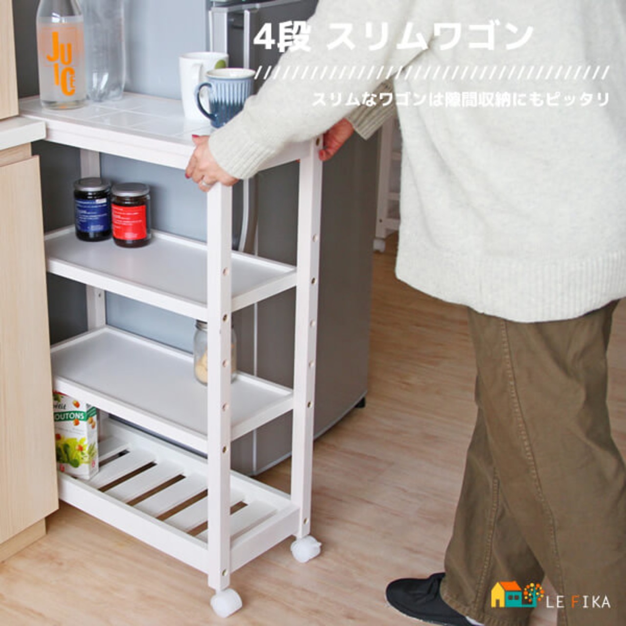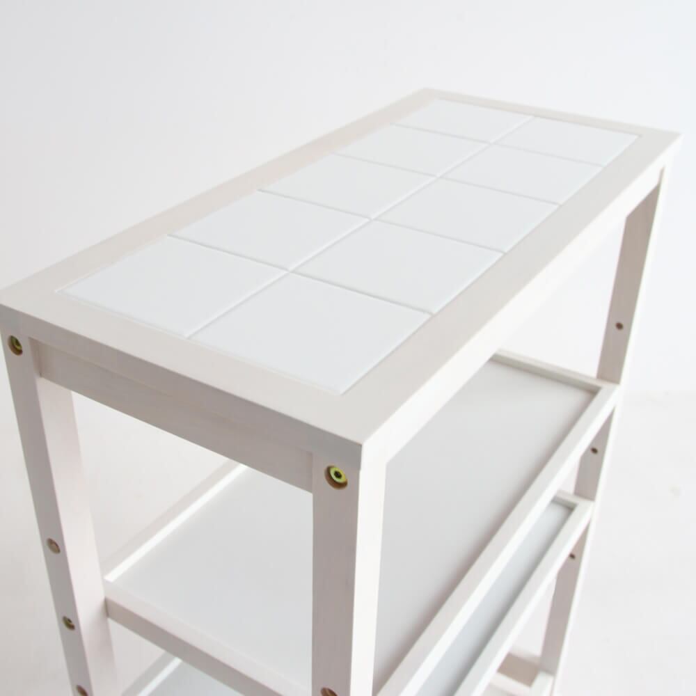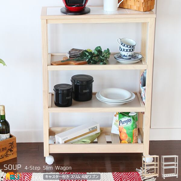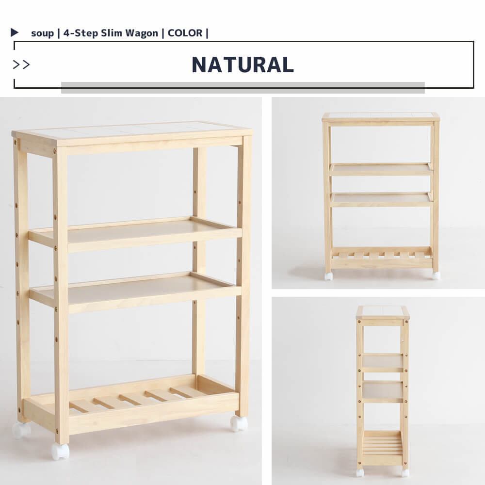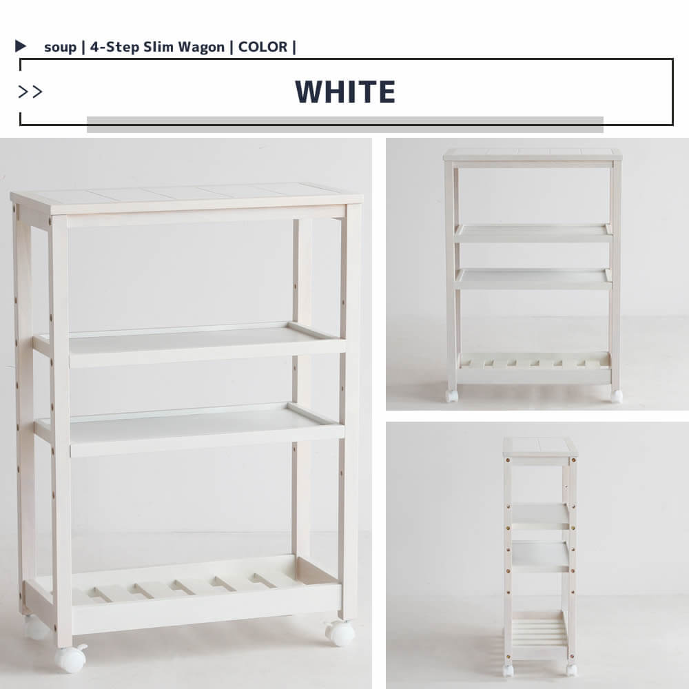 4段収納ワゴン キャスター付き おすすめ キッチンワゴン おしゃれ 北欧 ナチュラル ホワイト 木製 トップタイル 天然木 4段収納ラック 隙間収納ワゴン 隙間収納ラック キッチン収納