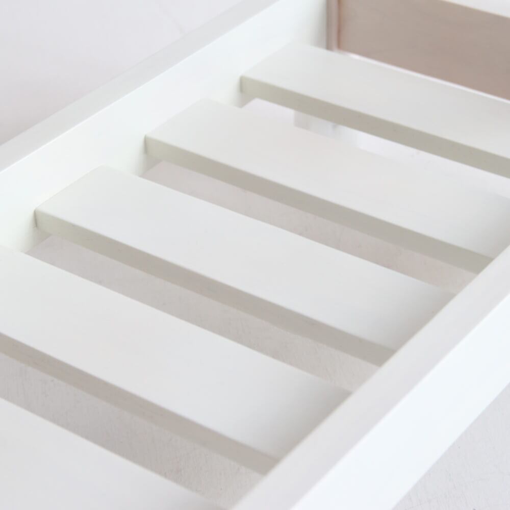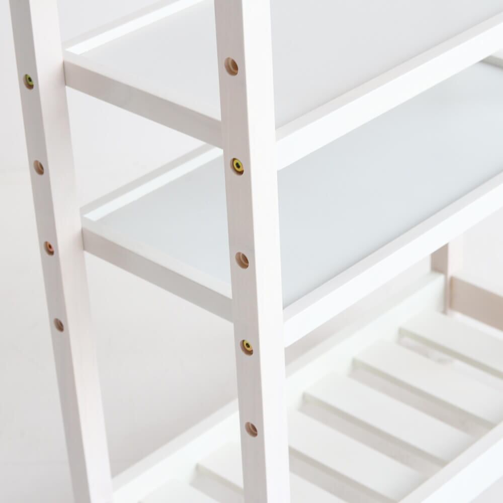 奥行き27.5cmで、すきま収納もできるスリムタイプで、ほかのインテリアにもなじみやすいナチュラル、ホワイトの2色展開です。