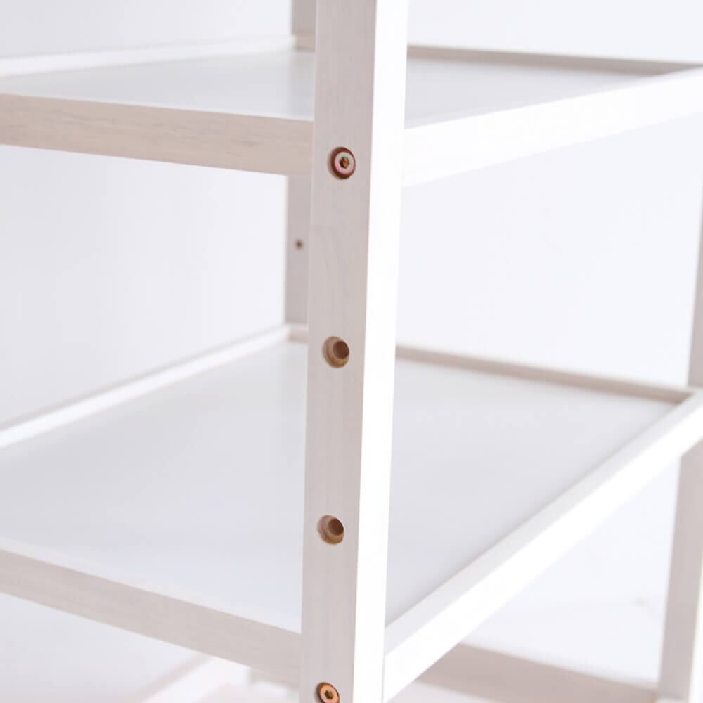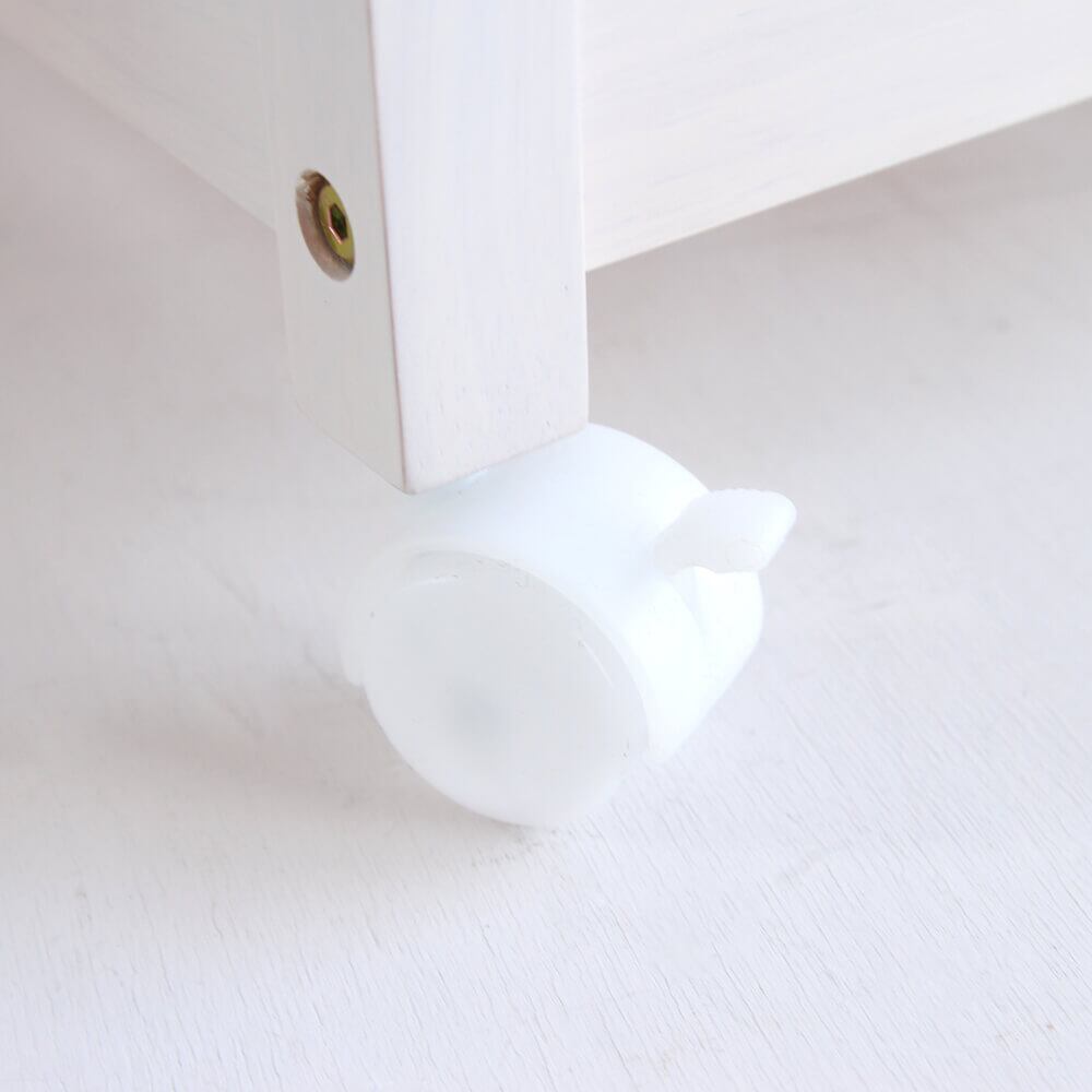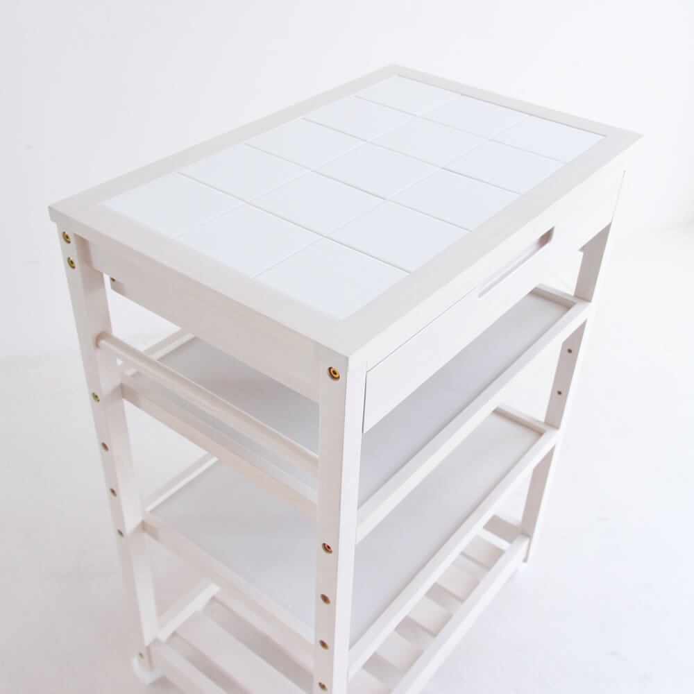 木目の見えるホワイトのタイルトップの4段ワゴンです。