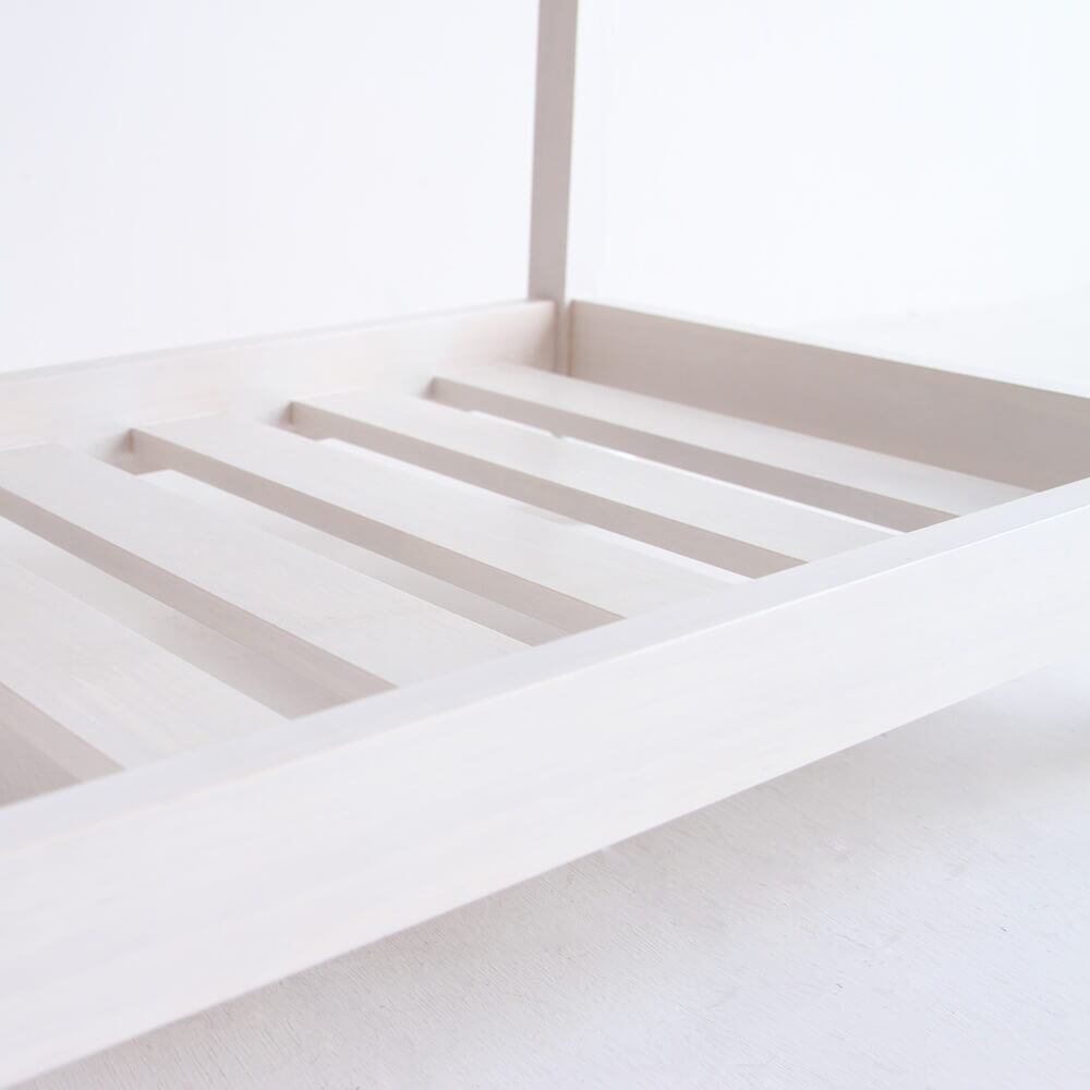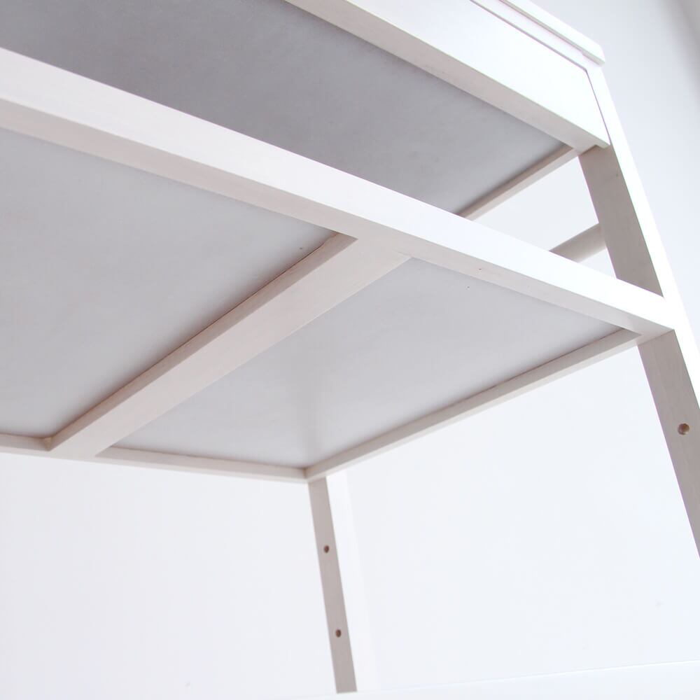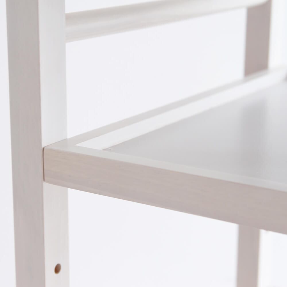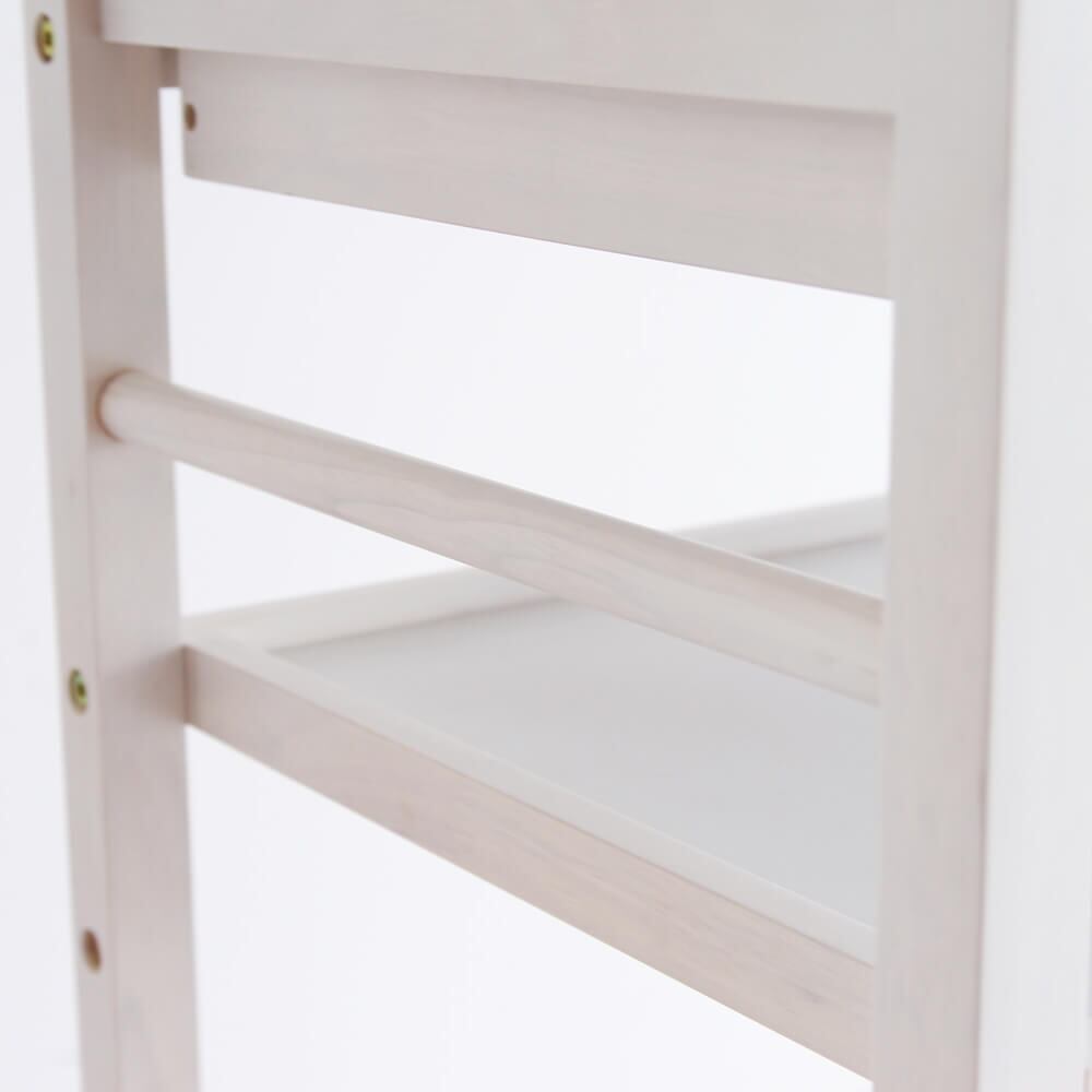 木目の見えるホワイトのタイルトップの4段ワゴンです。