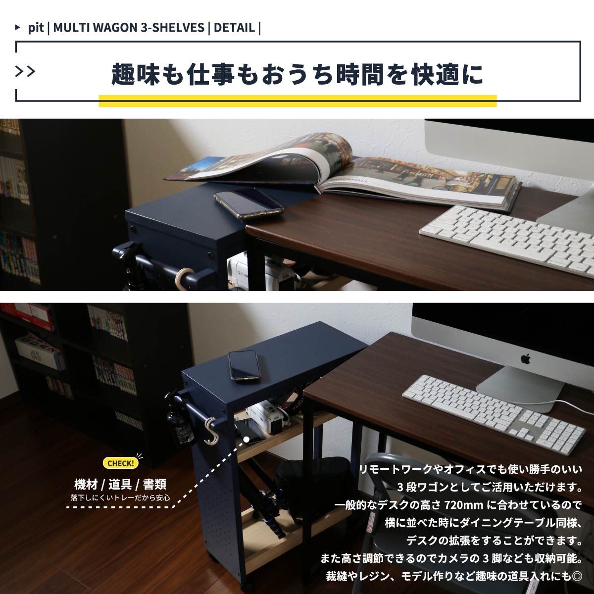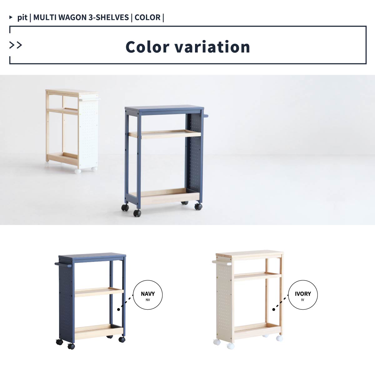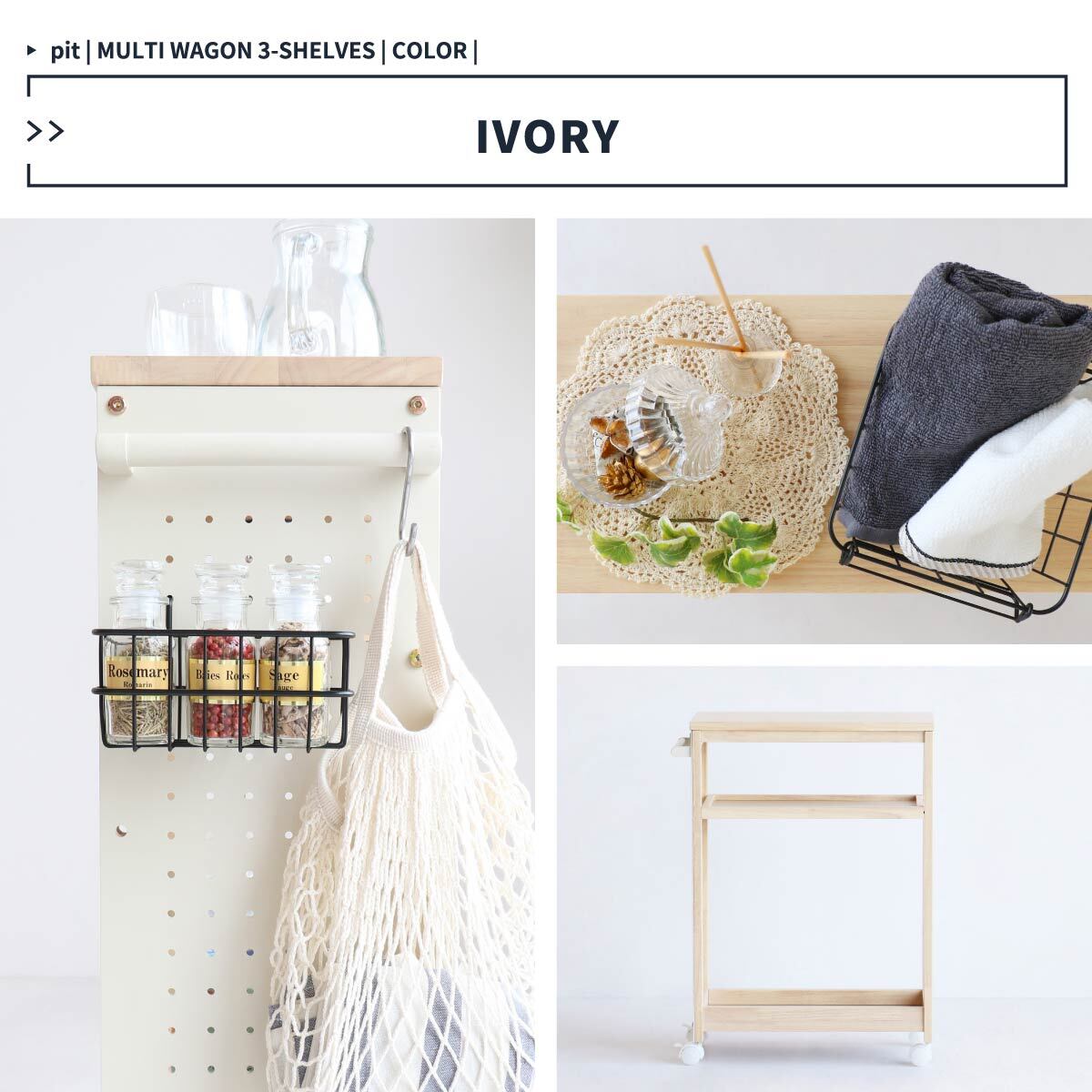 キッチンワゴン マルチワゴン デスクサイド デスクワゴン リビング 収納 キッチン用品収納 ダイニング用品収納 リビング収納 トイレ用品収納 バス用品収納 おすすめ おしゃれ 北欧 キャスター付き 3段ワゴン 三段ワゴン アイボリー ネイビー マルチラック DIY用ラック DIY用ワゴン