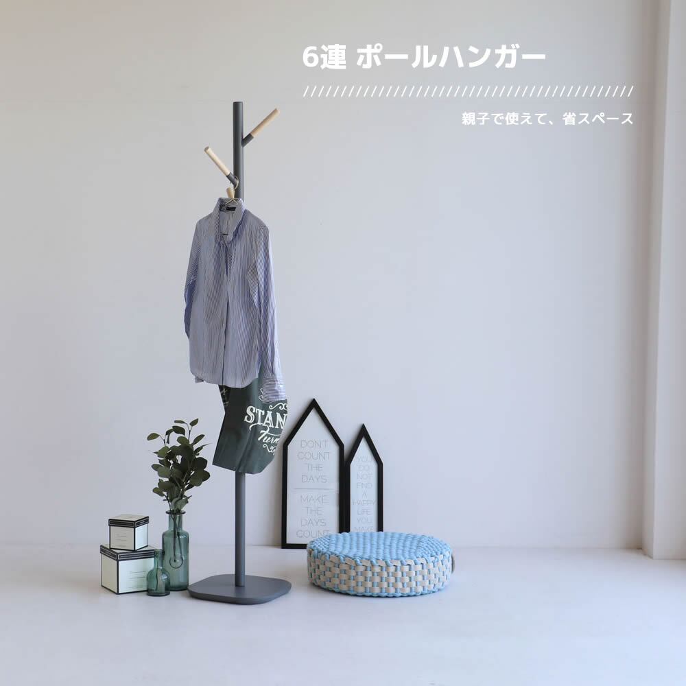ポールハンガー ハンガーラック スタンドポールハンガー 北欧 おすすめ おしゃれ 木製ハンガーラック コートハンガー 衣類ハンガー ダークグレー グレージュ アイボリー ポールハンガーラック 衣類掛け 6連ポールハンガー 省スペース 大人用 子供用 床傷防止