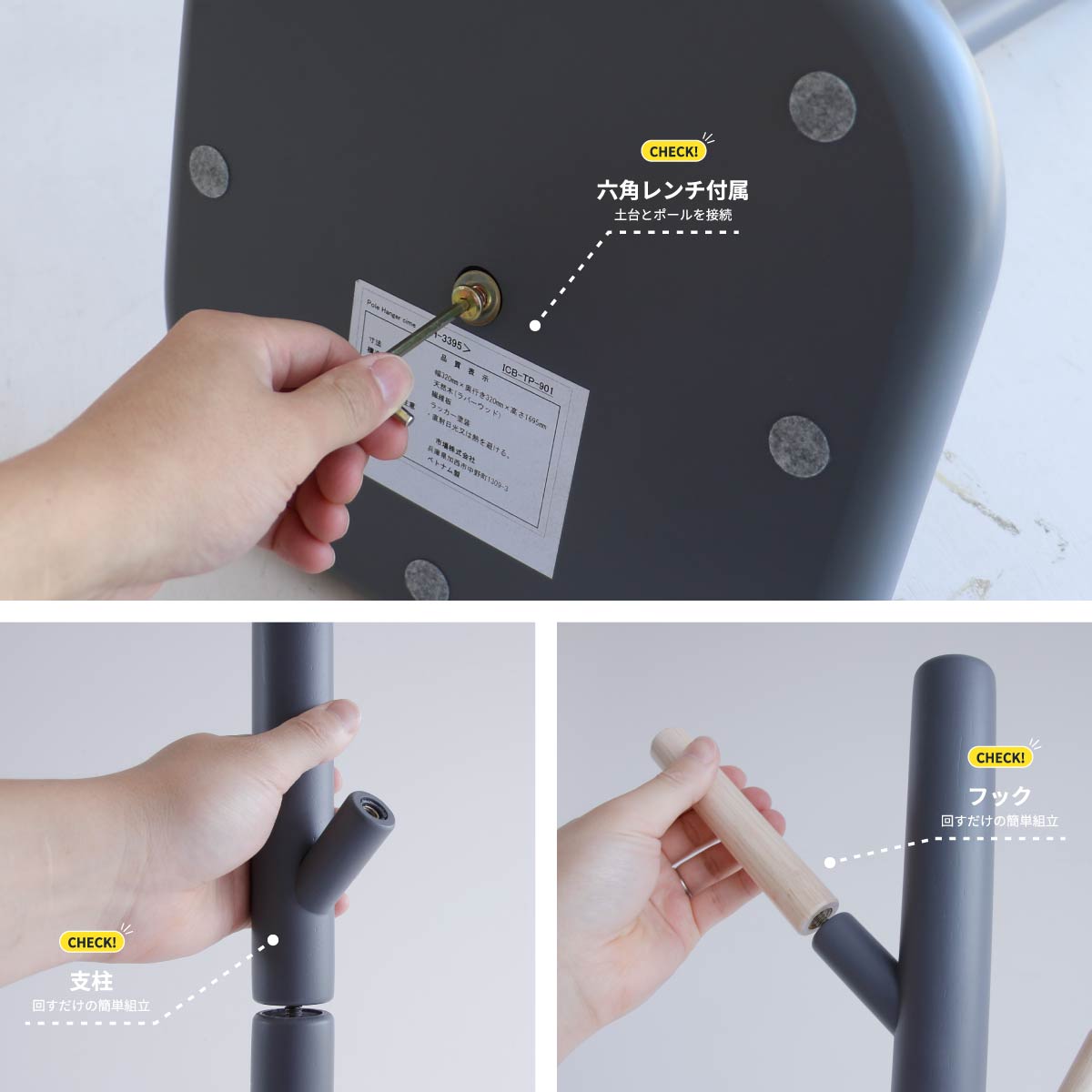 ・支柱、フック:天然木(ラバーウッド)