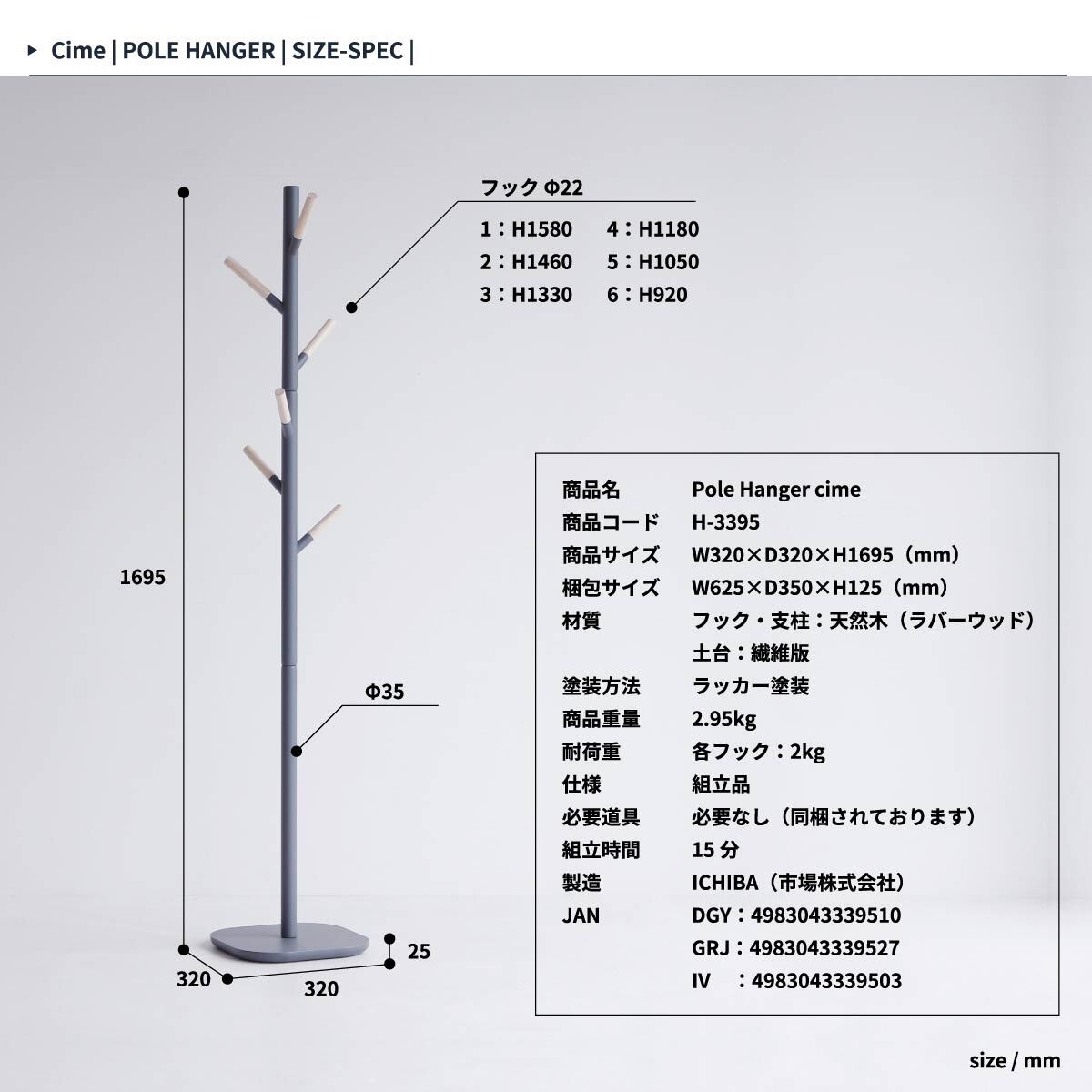 ■商品サイズ(約):幅32cm、奥行32cm、高さ169.5cm