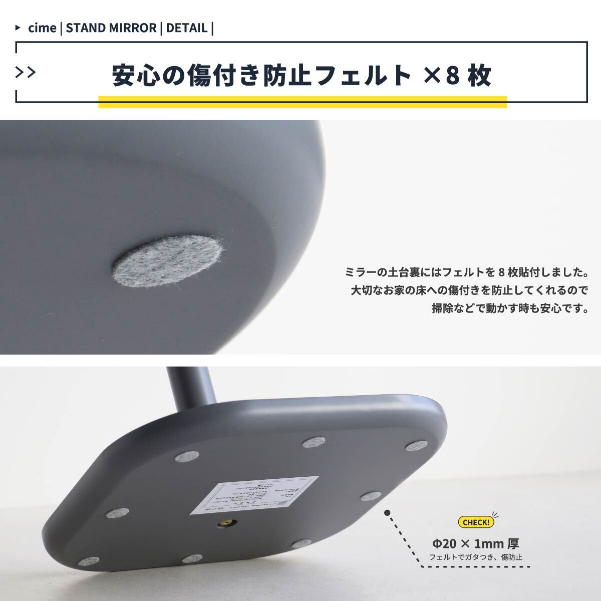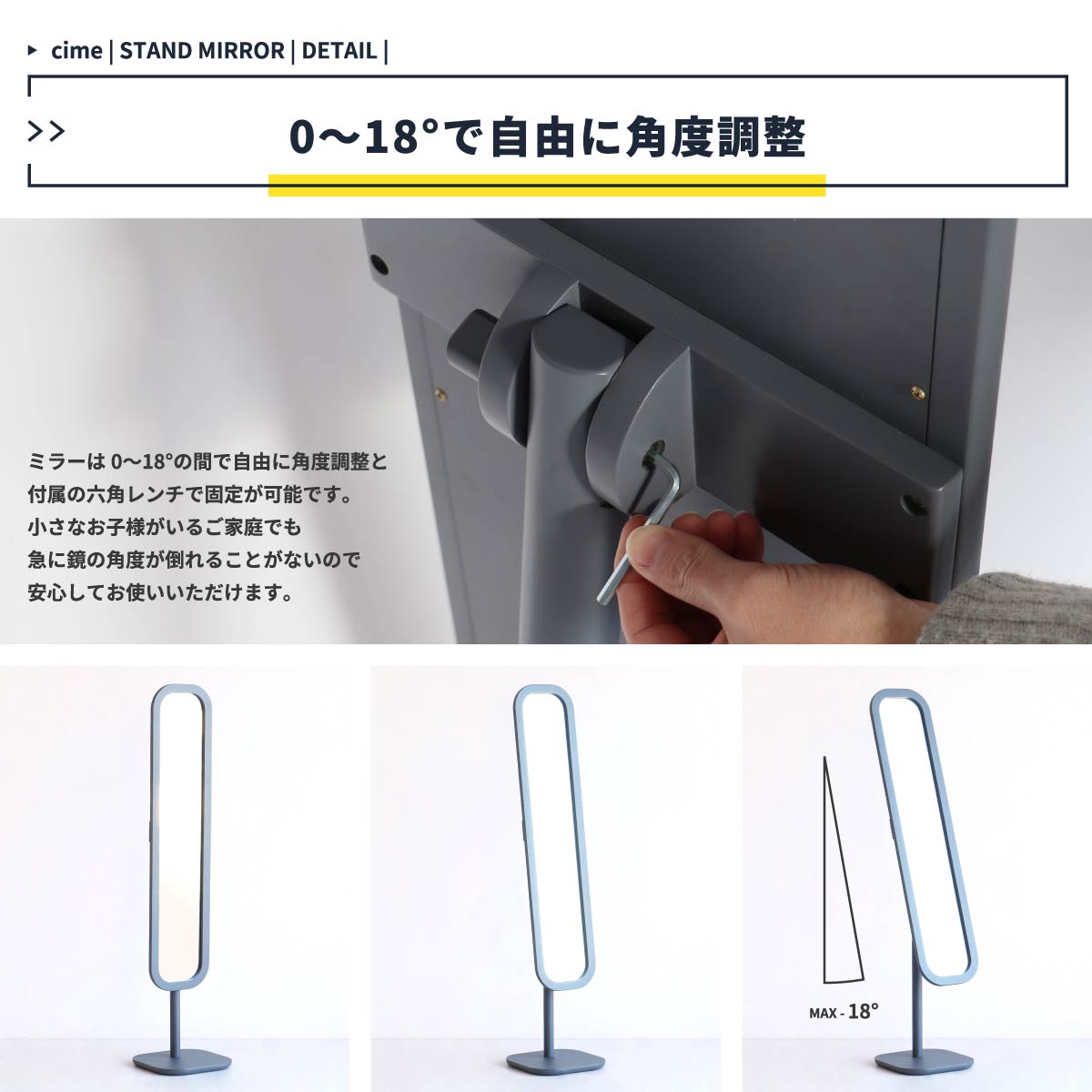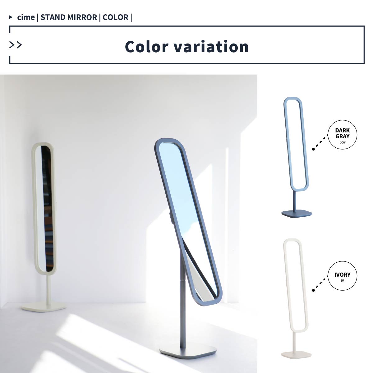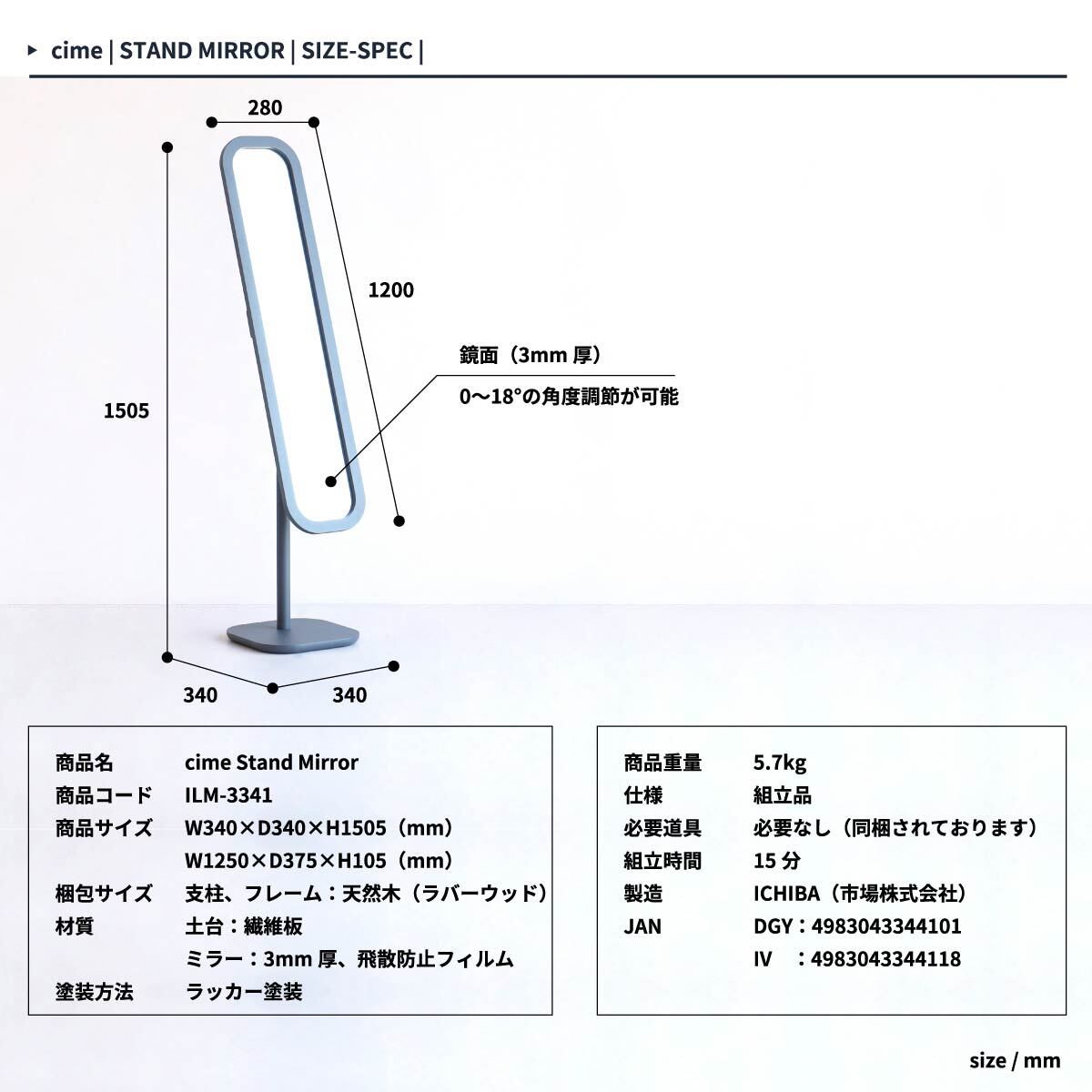 スタンドミラー ダークグレー アイボリー 角度調節 姿見 ミラー 鏡 自立鏡 全身用ミラー 全身用鏡 自立ミラー 玄関 リビング 幅34cm 奥行34cm 高さ150.5cm 姿見 飛散防止フィルム おすすめ おしゃれ 北欧 角度調節可能自立スタンドミラー 土台船底仕様 送料無料