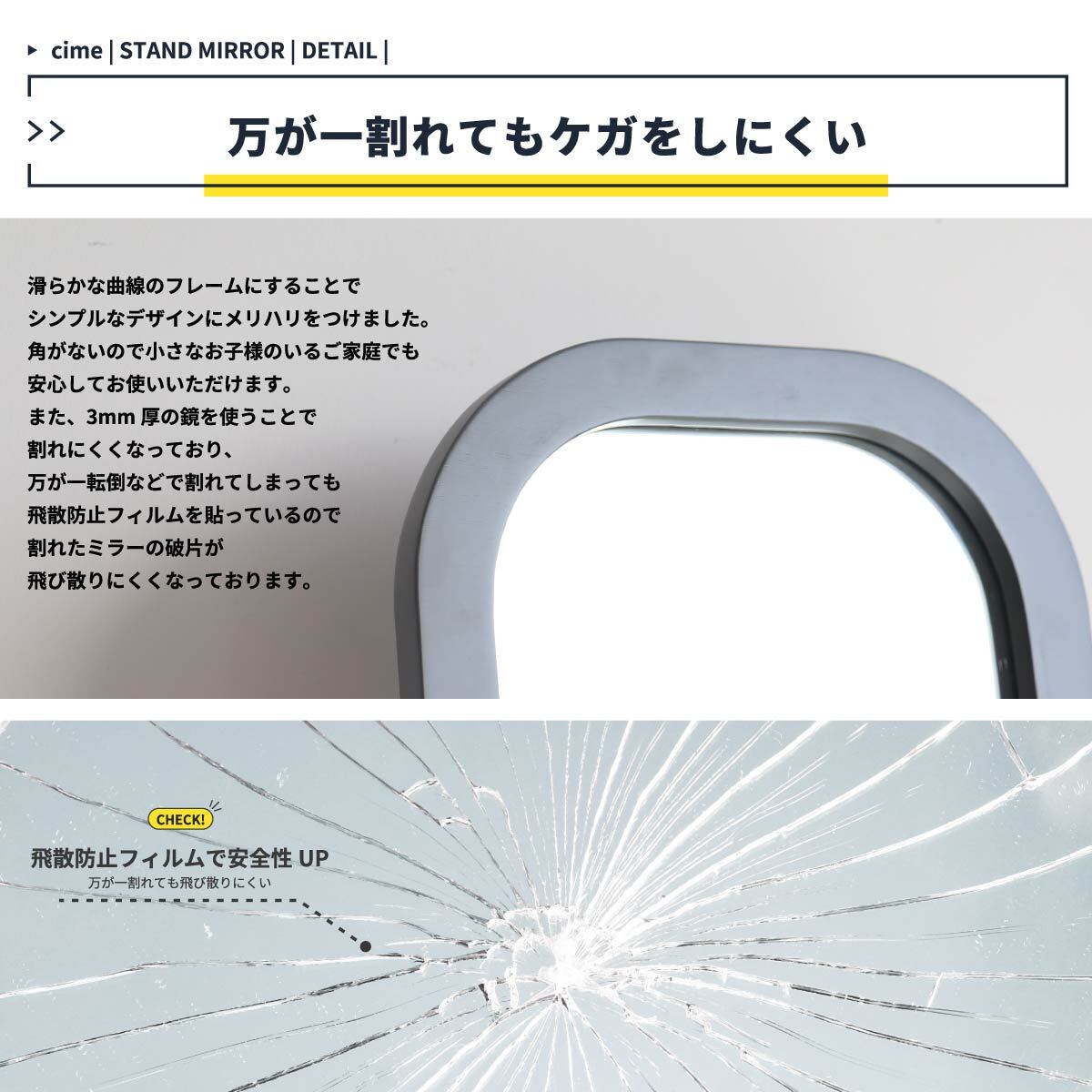 スタンドミラー 角度調節 姿見 飛散防止フィルム おすすめ おしゃれ 北欧 ミラー 鏡 自立鏡 全身用ミラー 全身用鏡 自立ミラー おしゃれ姿見 シンプル 角丸デザイン 角丸鏡 角度変更可能 全身用の鏡 全身用のスタンドミラー 船底使用土台