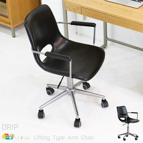 昇降式 アームチェア ブラックシルバー オフィスチェア 合皮チェア キャスター付きチェア 椅子 いす 背もたれ付きチェア 幅56cm 奥行53.5cm 高さ78.5cm 最大高さ90.5cm 合成皮革 PVCレザー おすすめ おしゃれ 北欧 事務椅子 肘付き 合皮チェアー 送料無料