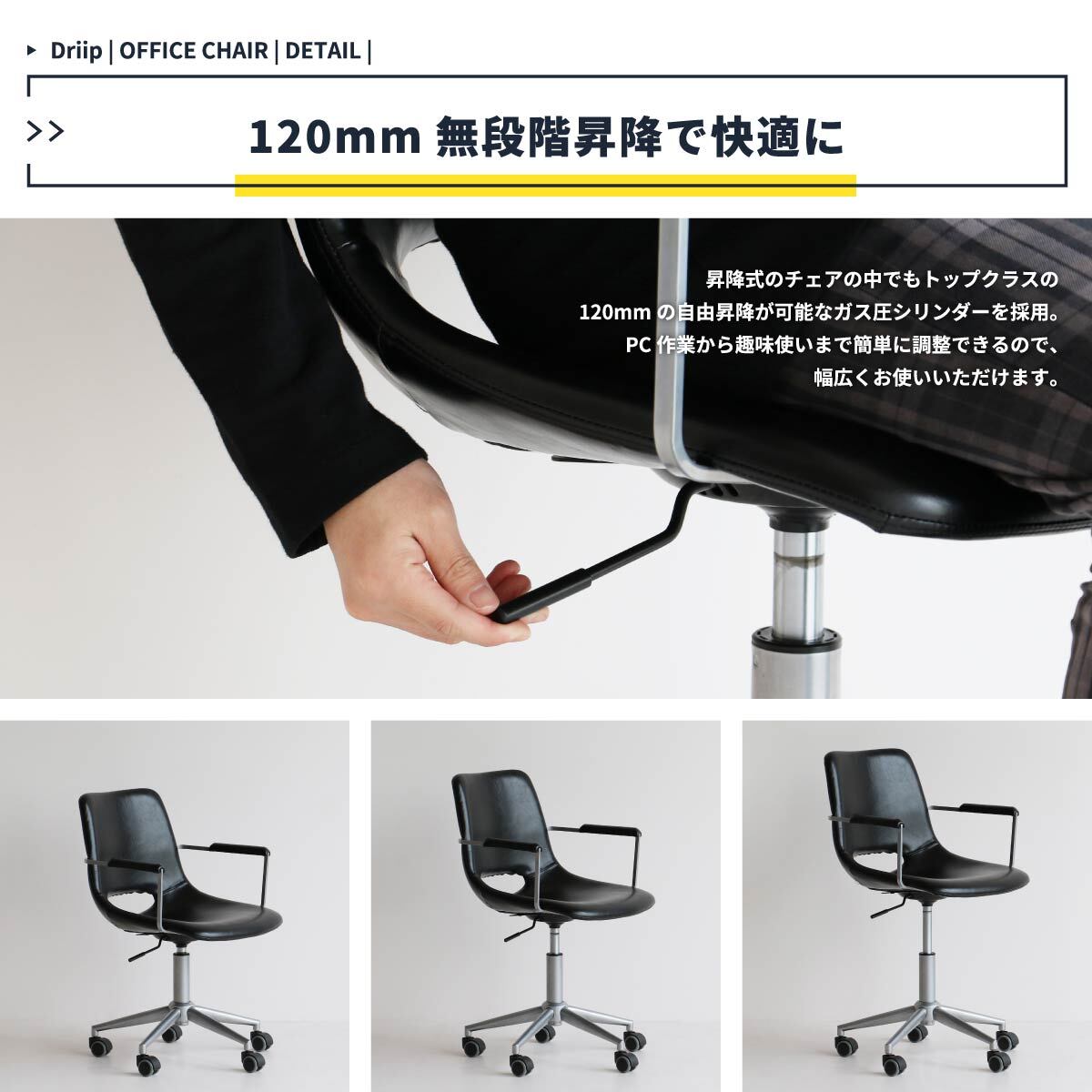 無段階昇降 オフィスチェア デスクチェア 合皮チェア リモートワーク 事務椅子 おすすめ おしゃれ 北欧 昇降式チェア 昇降式椅子 チェアー PVCレザー 合皮 スチール脚チェア キャスター付きチェア キャスター付き コンパクトチェア コンパクト椅子 回転式 回転イス 360度回転 事務用いす