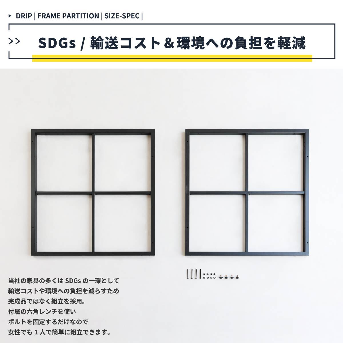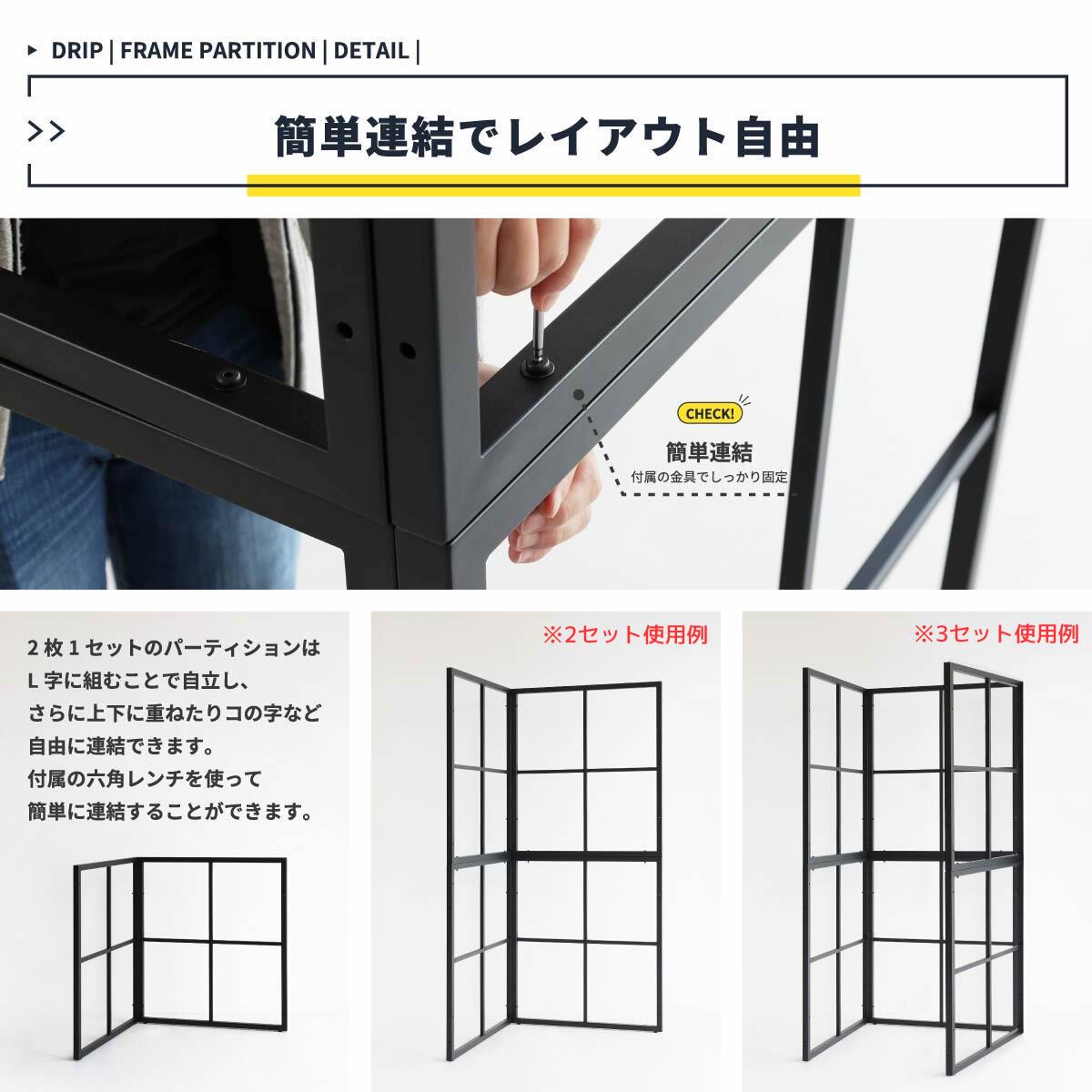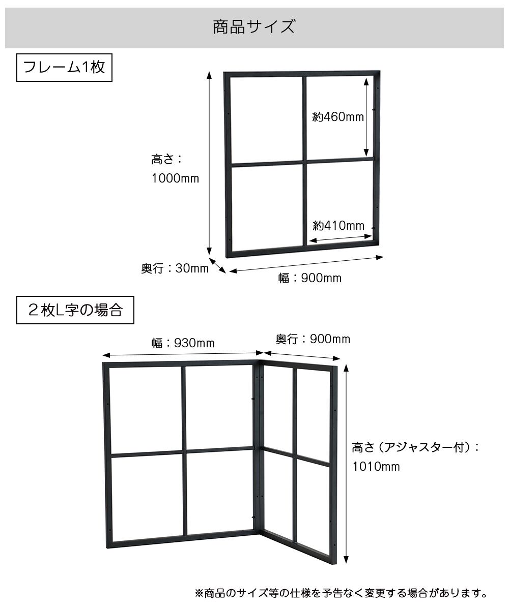 1セットあたり2枚のフレームが入っており、L字連結状にしてご使用いただくことができます。