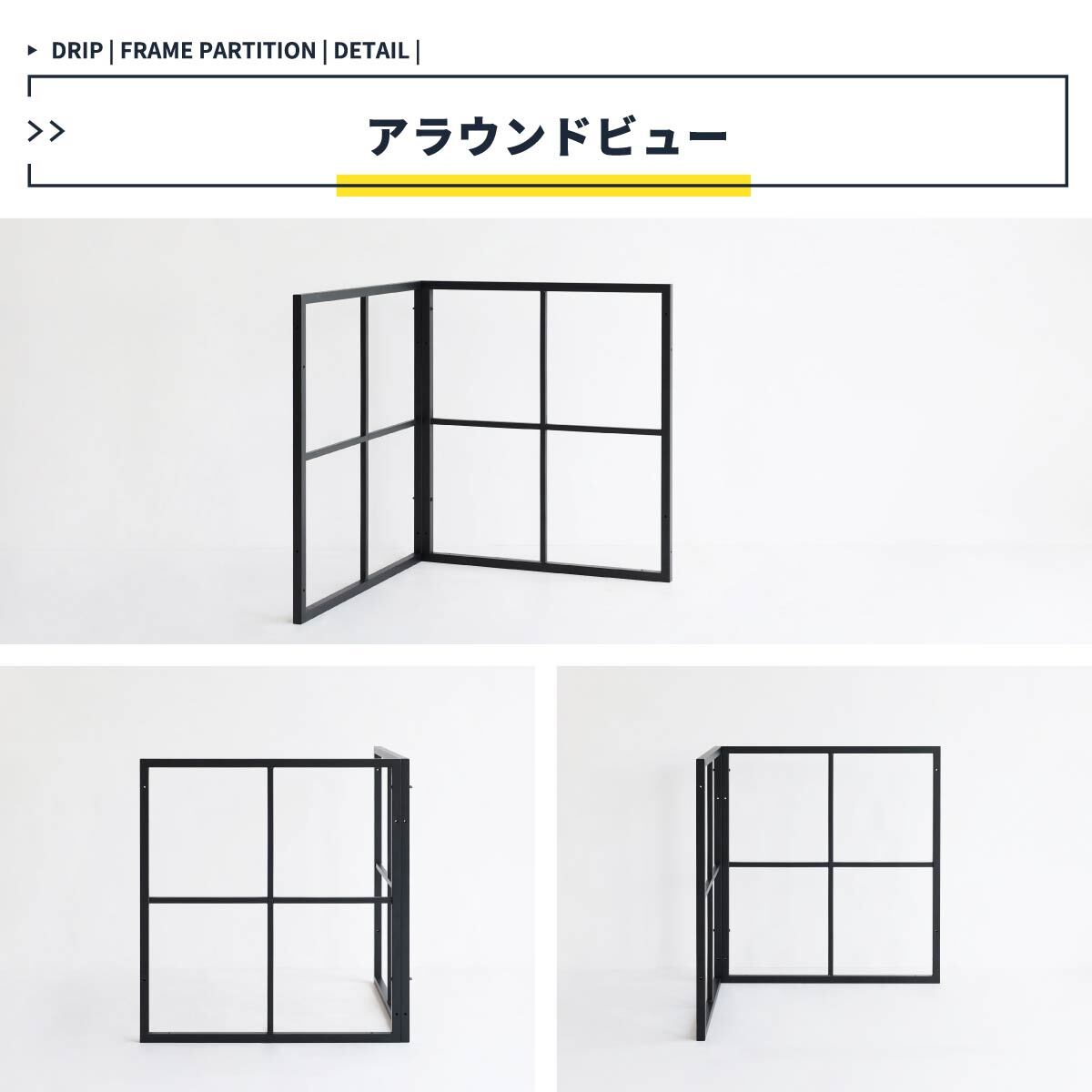 自由なレイアウトを作ることができる連結可能なフレームパーテーション1セットです。