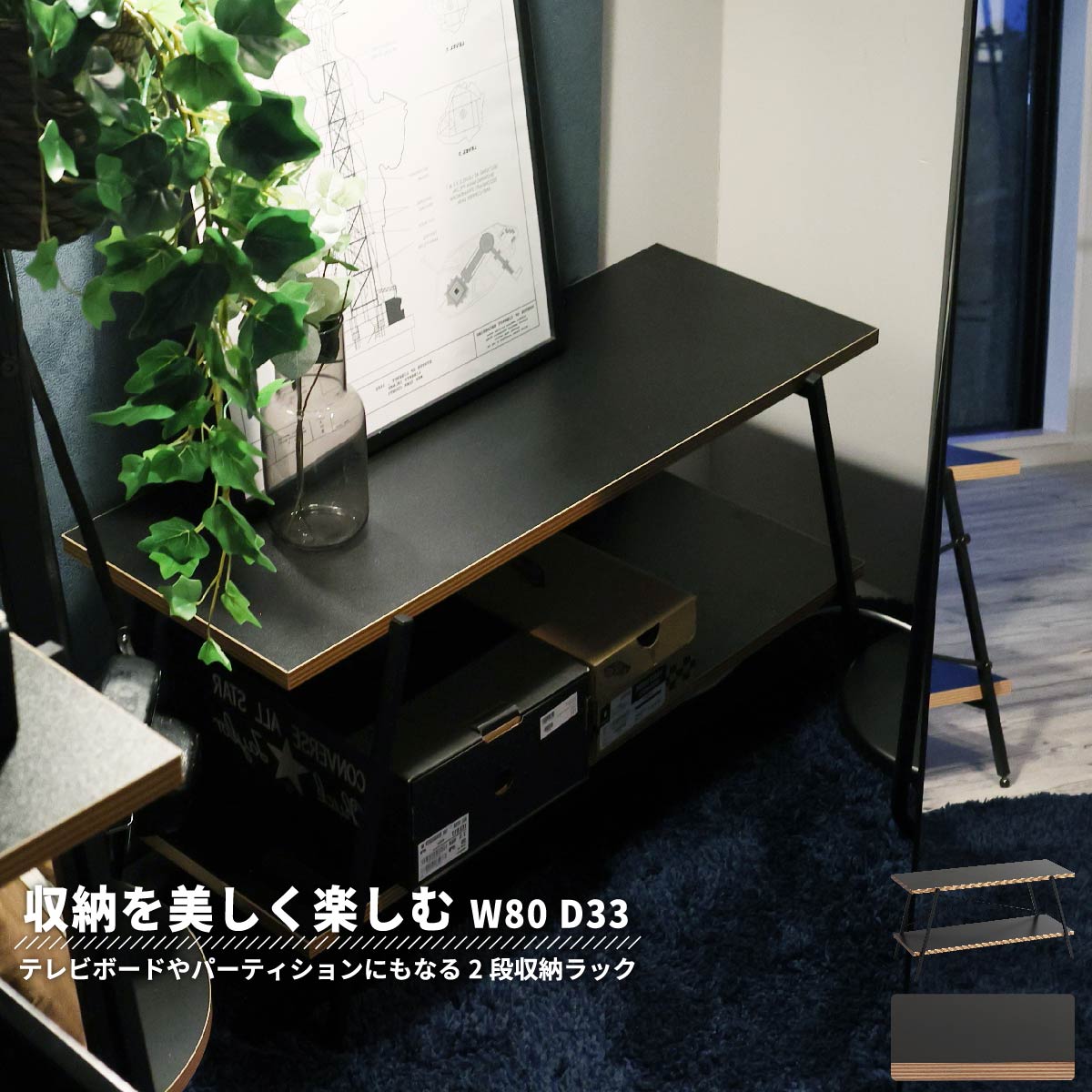 2段収納ラック ロータイプ ブラック 黒 ローラック 80cm幅 オープンラック 幅80cm 奥行33cm 高さ42cm テレビラック テレビ台 おすすめ おしゃれ 北欧 収納棚 収納シェルフ ラック 二段オープンラック コンパクト 省スペース 2段ラック インテリア 家具 送料無料