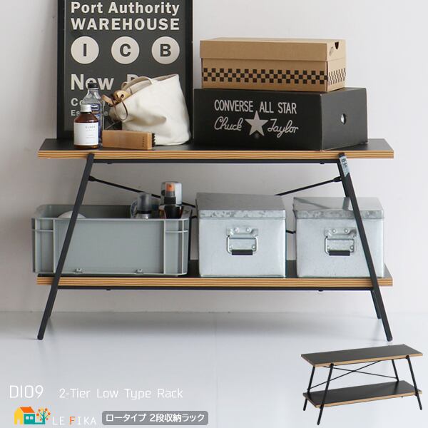 ブラックマットにウッドラインが映えるお洒落な2段収納ラックです。