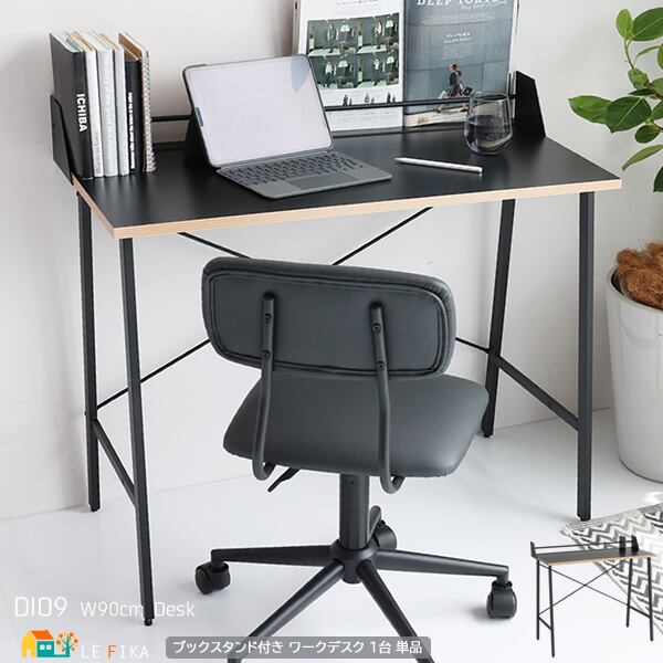 ワークデスク ブックスタンド付き ブラック 黒 90cm幅 スライドレール付き 書斎デスク 学習デスク 作業台 作業机 作業デスク タブレット立て掛け 机 幅90cm 奥行45cm 高さ82cm 書斎 テレワーク パソコンデスク リモートワーク 在宅ワーク デスク PCデスク 送料無料