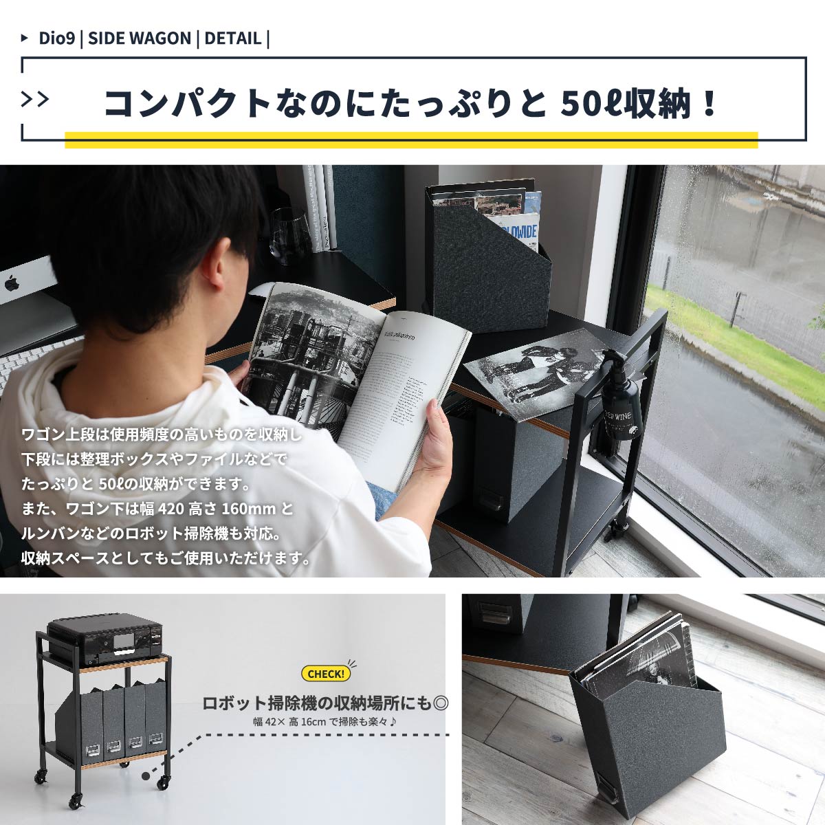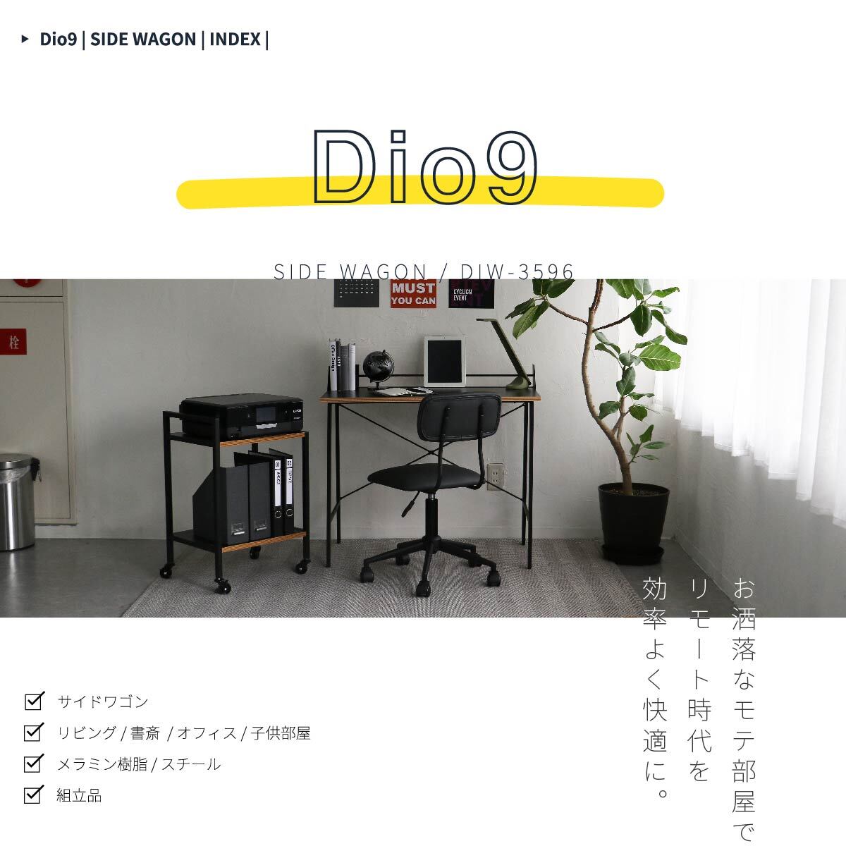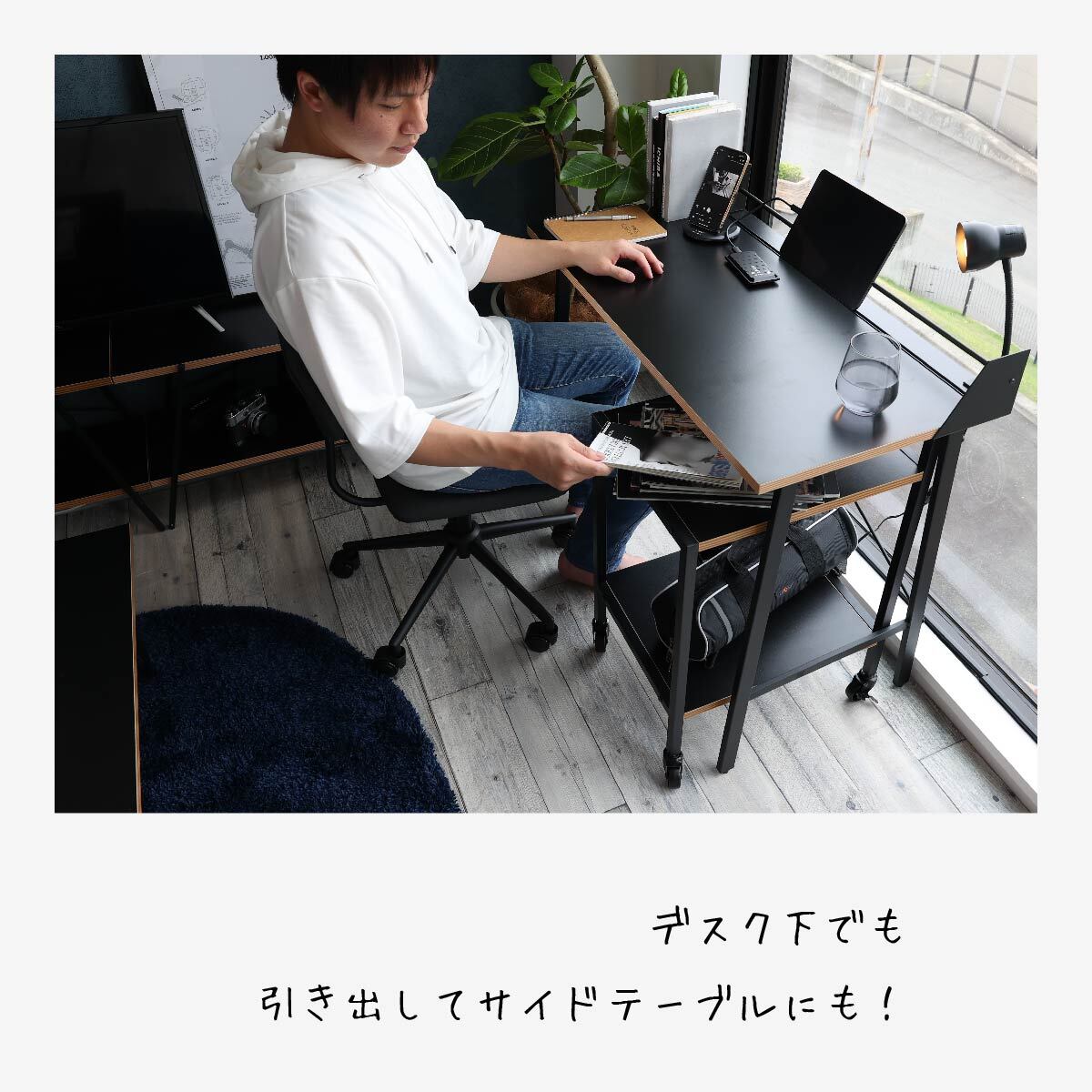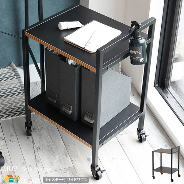 サイドワゴン キャスター付きラック デスクサイド ツールワゴン ブラック 黒 おすすめ おしゃれ 北欧 キャスター付き プリンターラック 収納ラック オフィスワゴン 子供部屋ワゴン 書斎 オフィス リモートワーク 在宅ワーク テレワーク