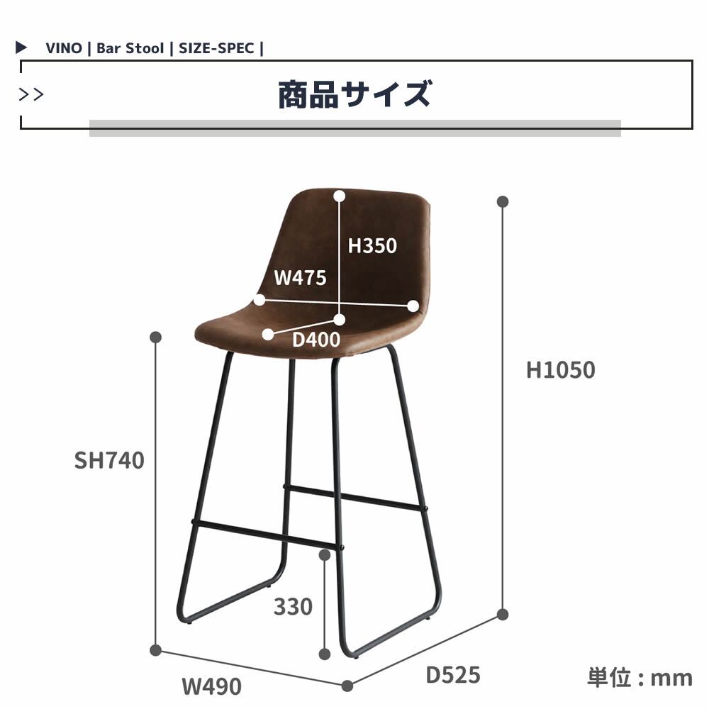 ■商品サイズ(約):幅49cm、奥行52.5cm、高さ105cm、座面高74cm