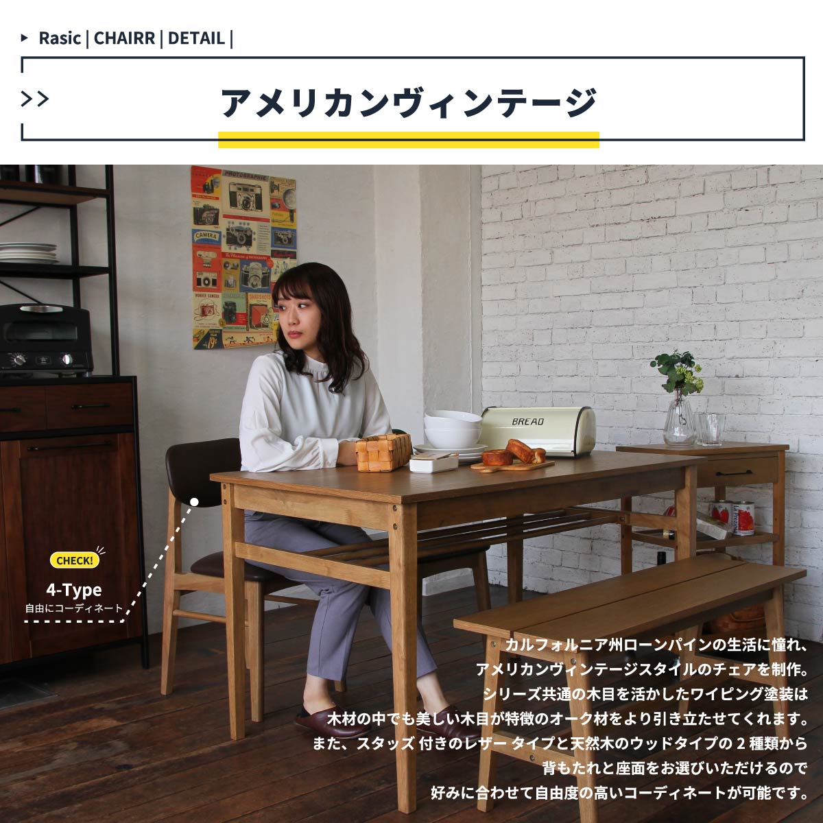 どこか懐かしさを感じるソフトヴィンテージテイストに仕上げています。