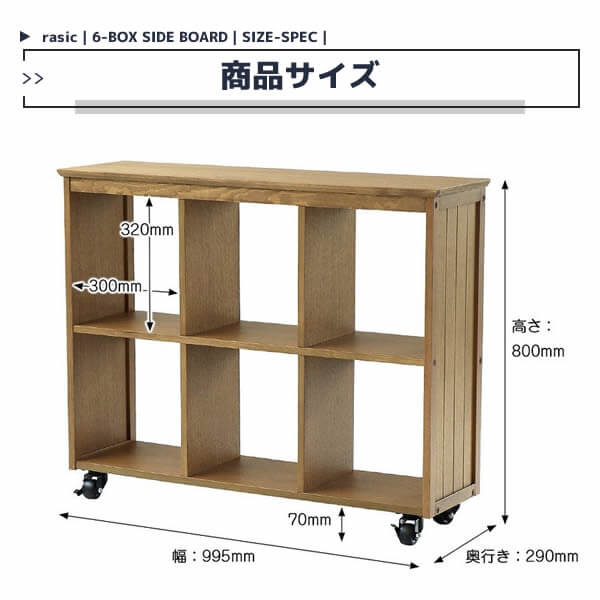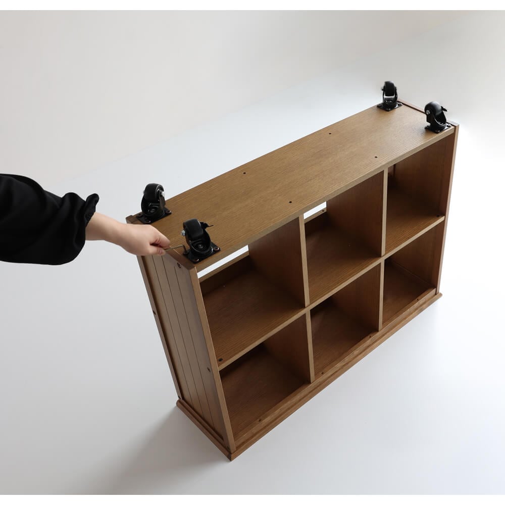 おしゃれデザインの魅せる収納ができるキャスター付きの6ボックスサイドボードです。