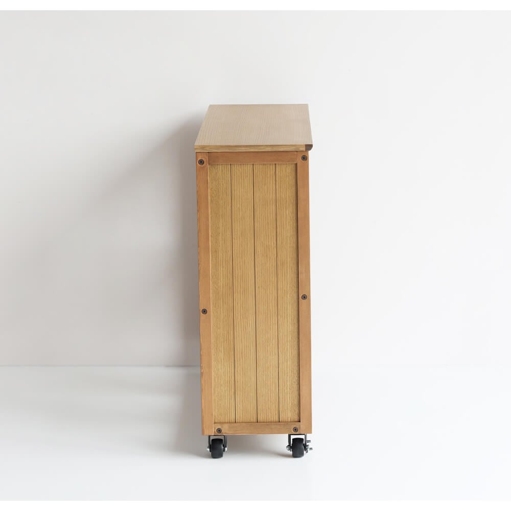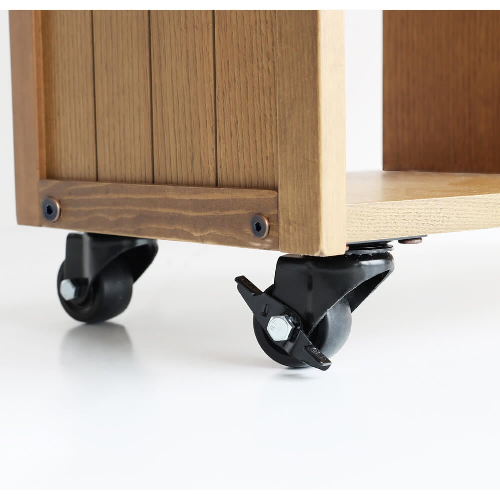 移動が簡単なキャスター付きで、左右どちらからでも物を取り出すことが出来るマルチワゴンとして使用可能です。